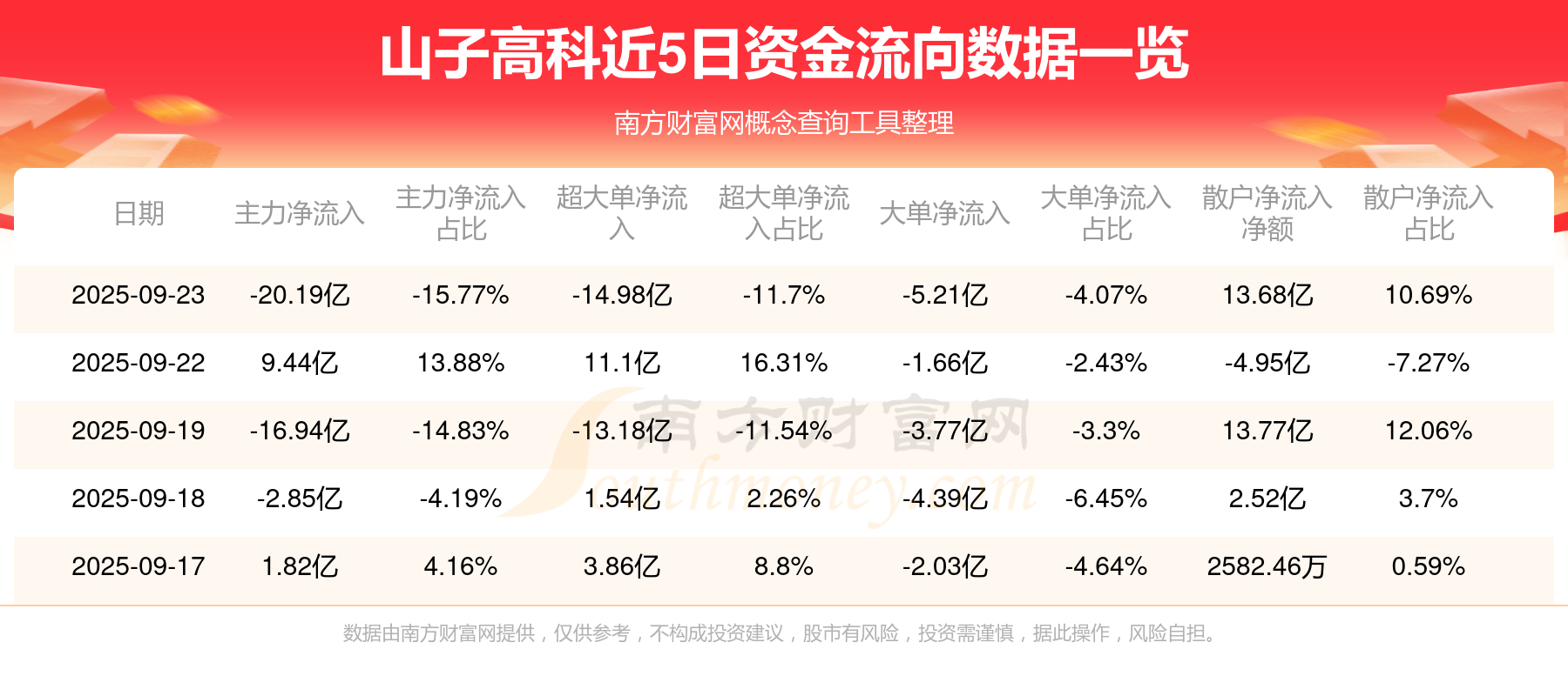 9月23日消息,山子高科主力净流出20.19亿元,超大单净流出14.98亿元,散户净流入13.68亿元。