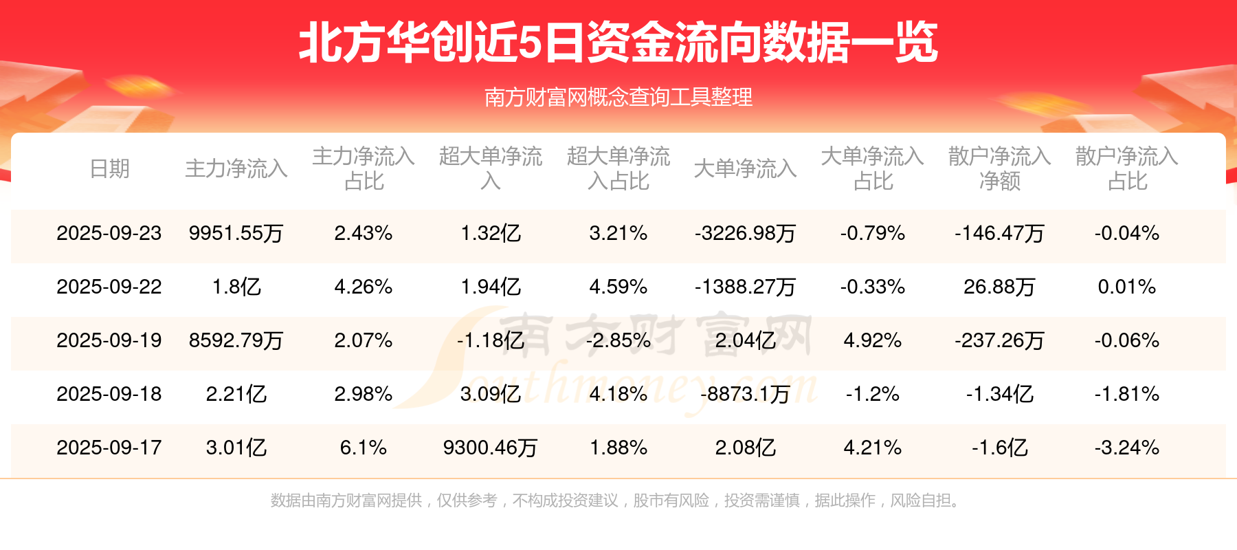 近5日资金流向一览见下表: