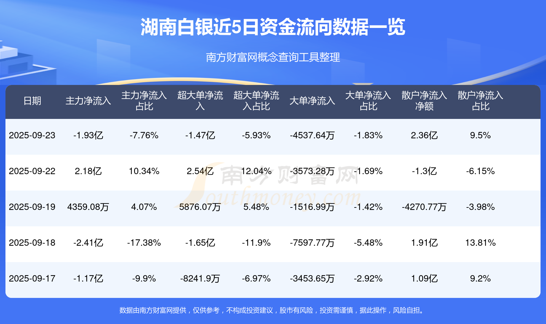 9月23日消息,湖南白银资金净流出1.93亿元,超大单资金净流出1.47亿元,换手率16.45%,成交金额24.8亿元。