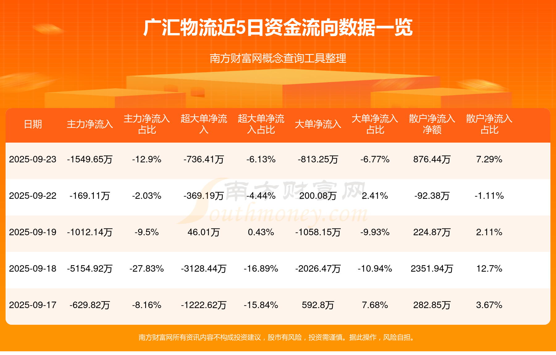 近5日资金流向一览见下表: