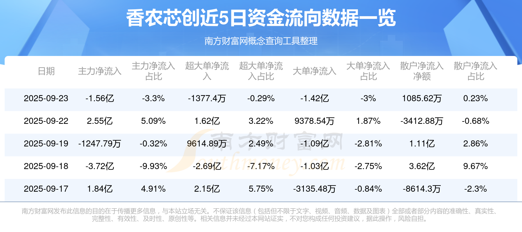 9月23日消息,香农芯创9月23日主力净流出1.56亿元,超大单净流出1377.4万元,大单净流出1.42亿元,散户净流入1085.62万元。