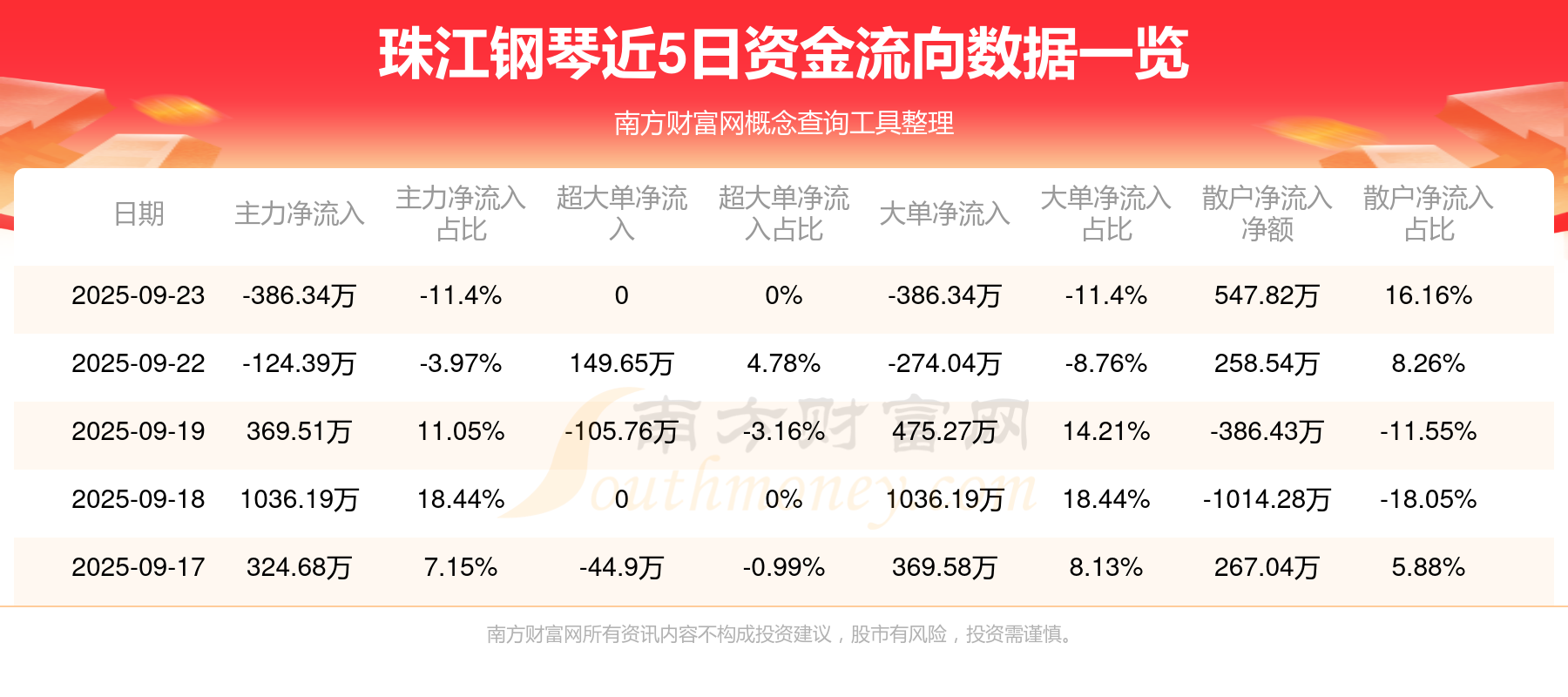 9月23日消息,珠江钢琴资金净流出386.34万元,换手率0.58%,成交金额3390万元。
