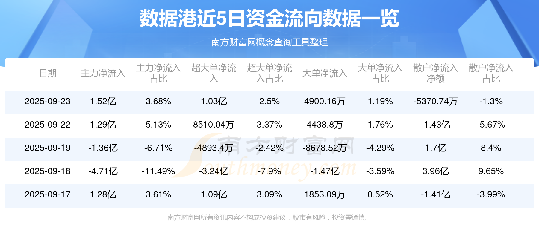 近5日资金流向一览见下表: