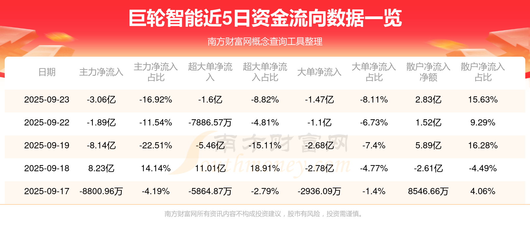 近5日资金流向一览见下表: