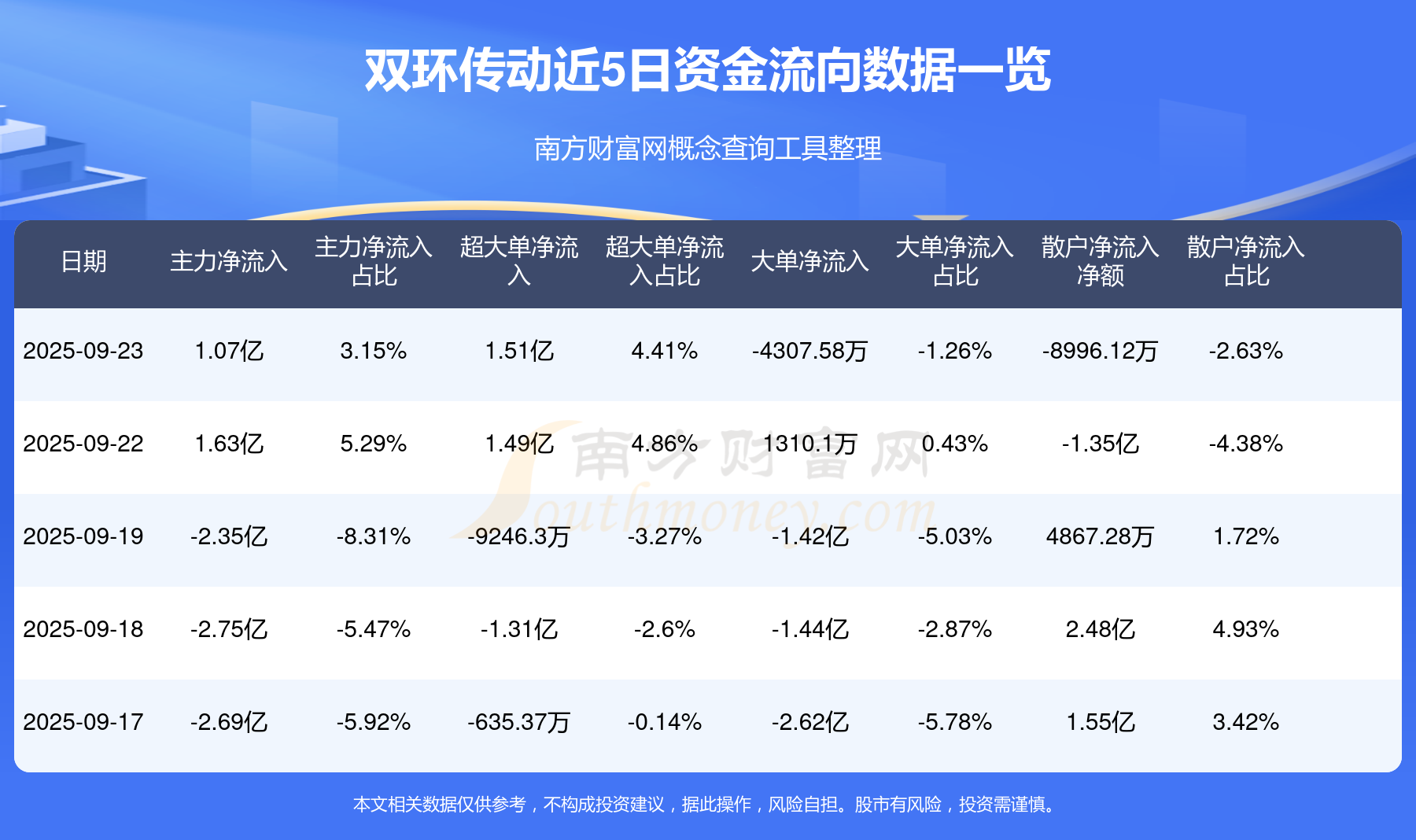 9月23日消息,双环传动资金净流入1.07亿元,超大单资金净流入1.51亿元,换手率8.76%,成交金额34.17亿元。