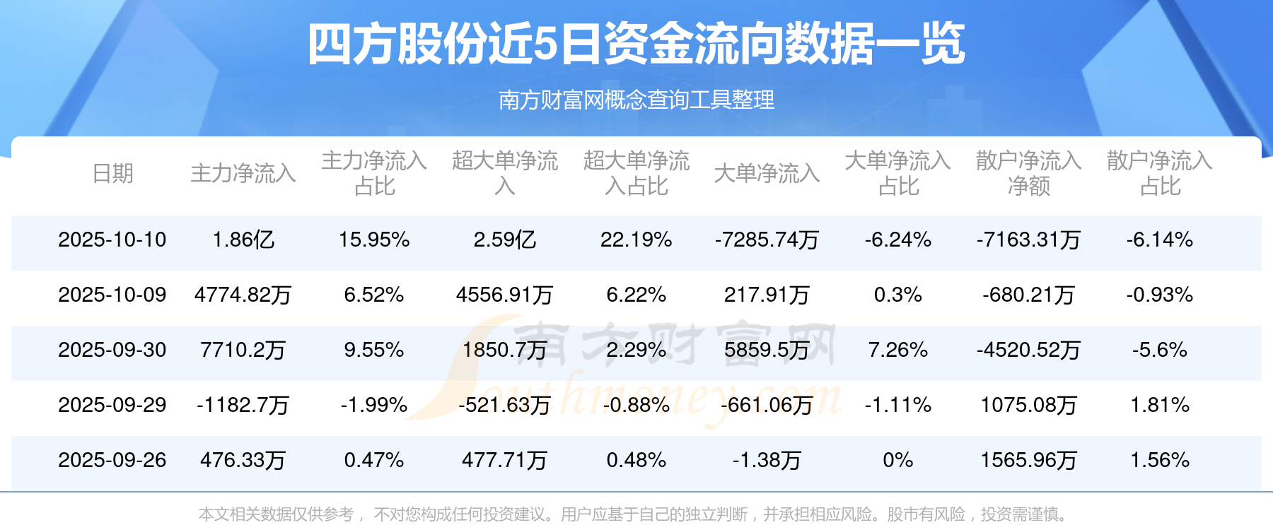 10月10日消息,四方股份资金净流入1.86亿元,超大单资金净流入2.59亿元,换手率9.99%,成交金额18.88亿元。