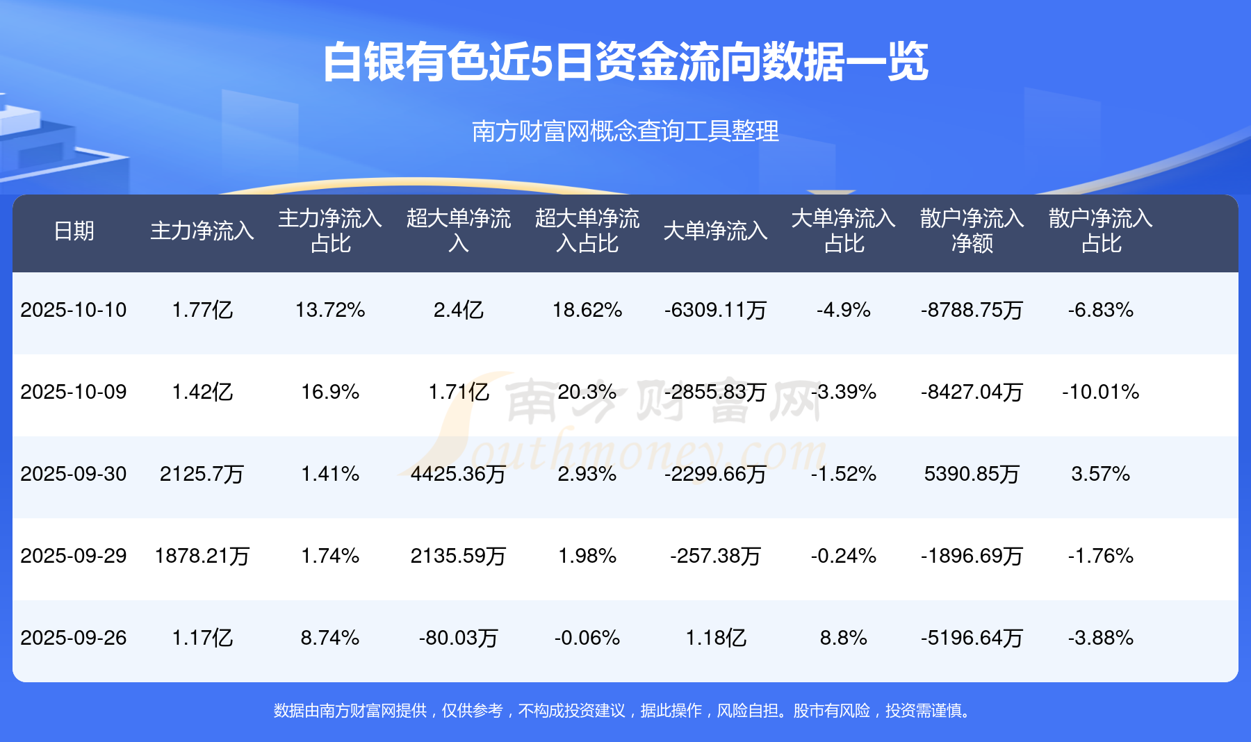 10月10日消息,白银有色资金净流入1.77亿元,超大单资金净流入2.4亿元,换手率6.24%,成交金额23.92亿元。