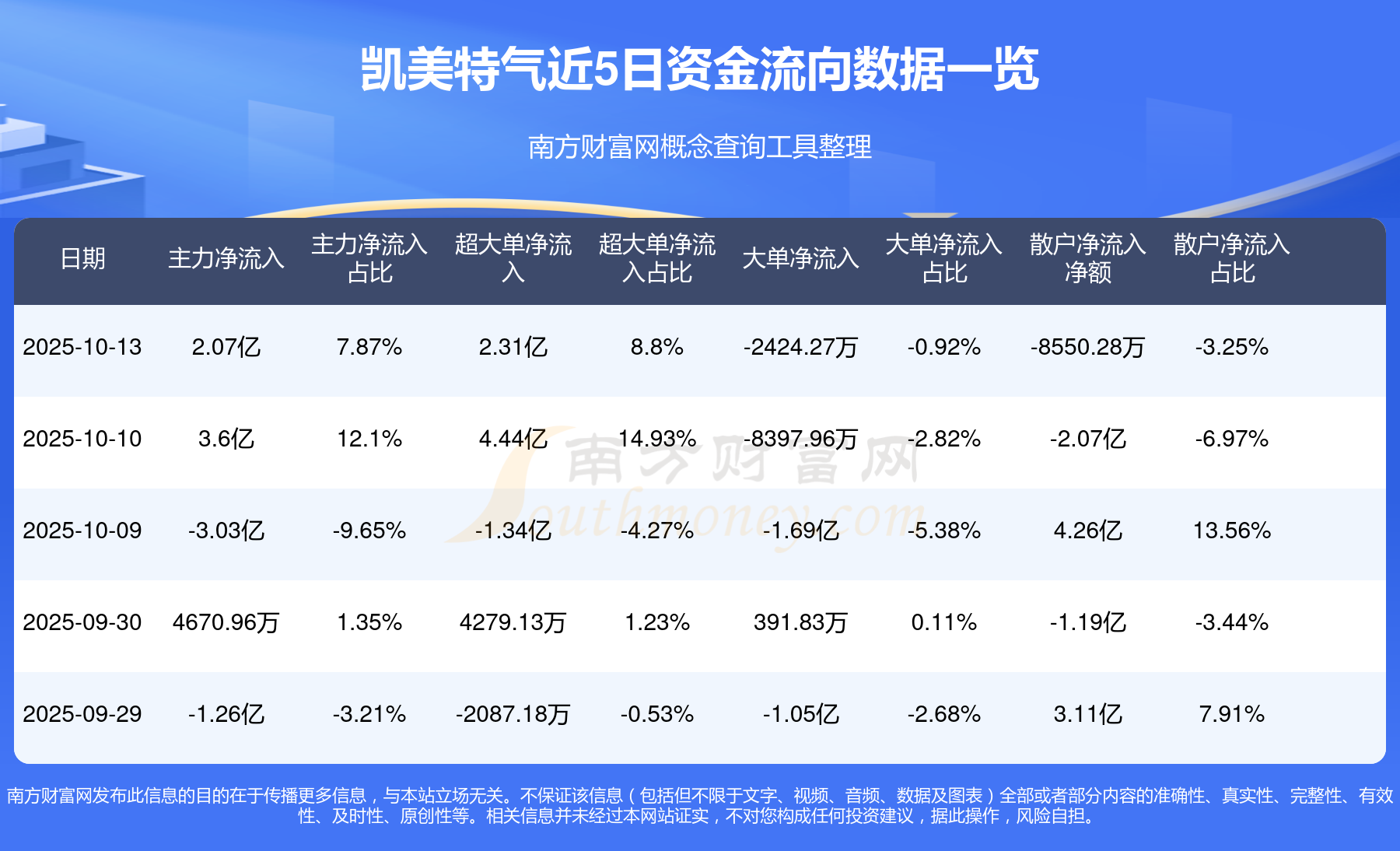 10月13日主力资金净流入2.07亿元,超大单资金净流入2.31亿元,换手率14.09%,成交金额26.29亿元。