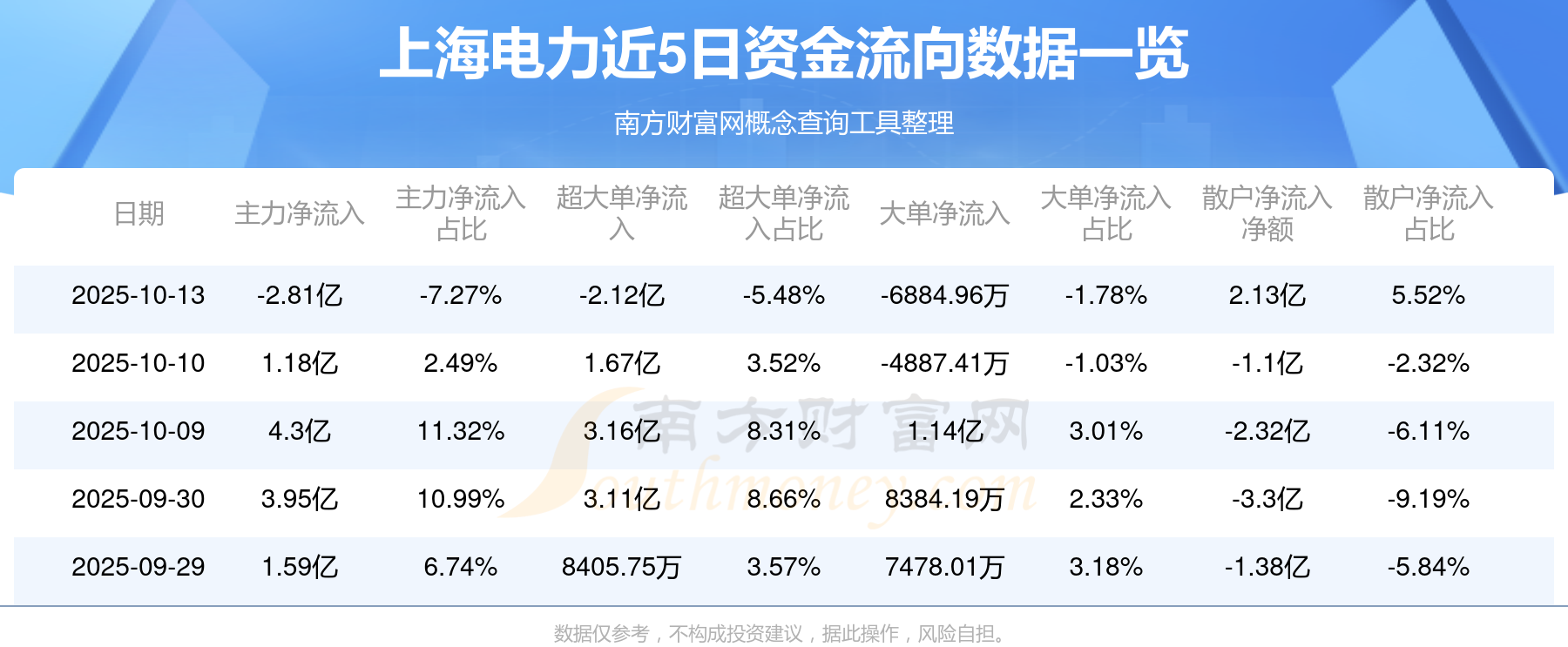 10月13日消息,上海电力10月13日主力资金净流出2.81亿元,超大单资金净流出2.12亿元,大单资金净流出6884.96万元,散户资金净流入2.13亿元。