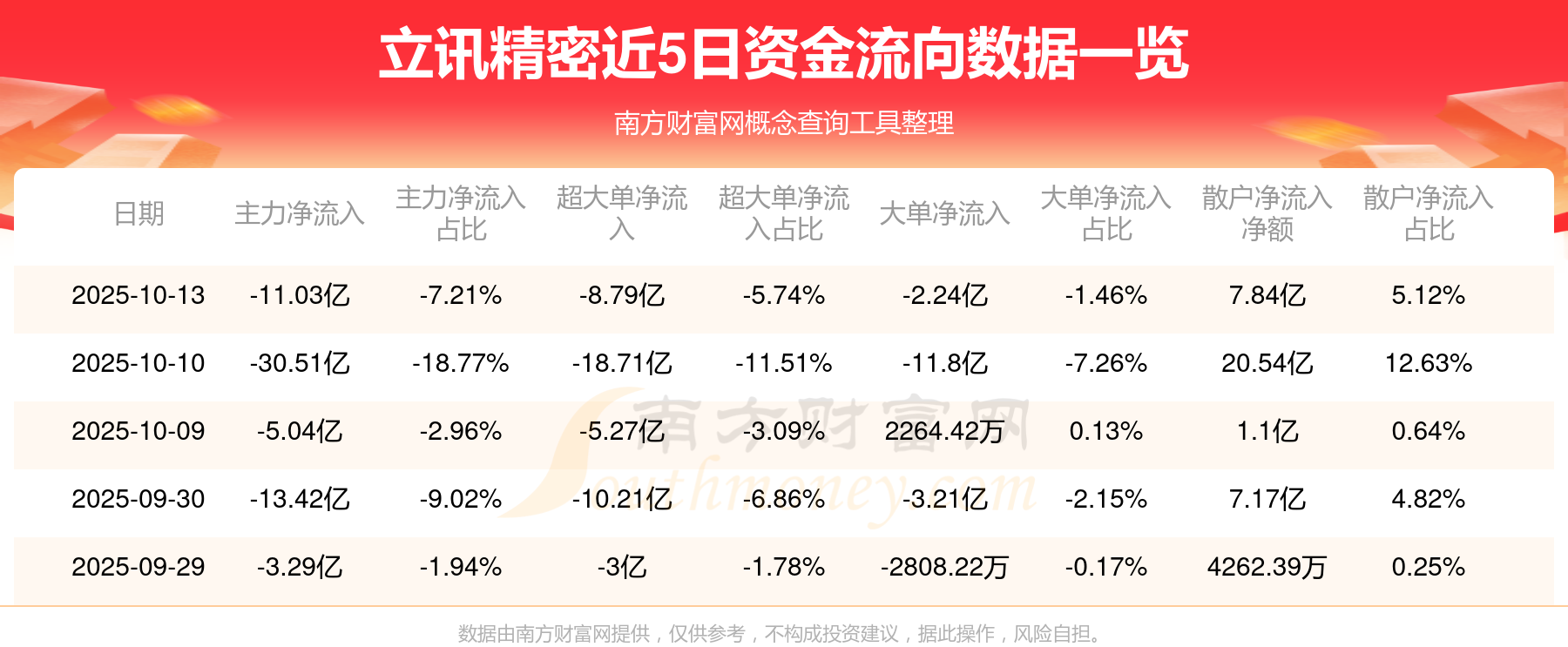 10月13日该股主力净入-11.03亿元,其中资金流入方面:超大单净入30.94亿元,大单净入44.56亿元,中单净入42.61亿元,散户净入29.29亿元;资金流出方面:超大单净出39.73亿元,大单净出46.8亿元,中单净出39.42亿元,散户净出21.46亿元。