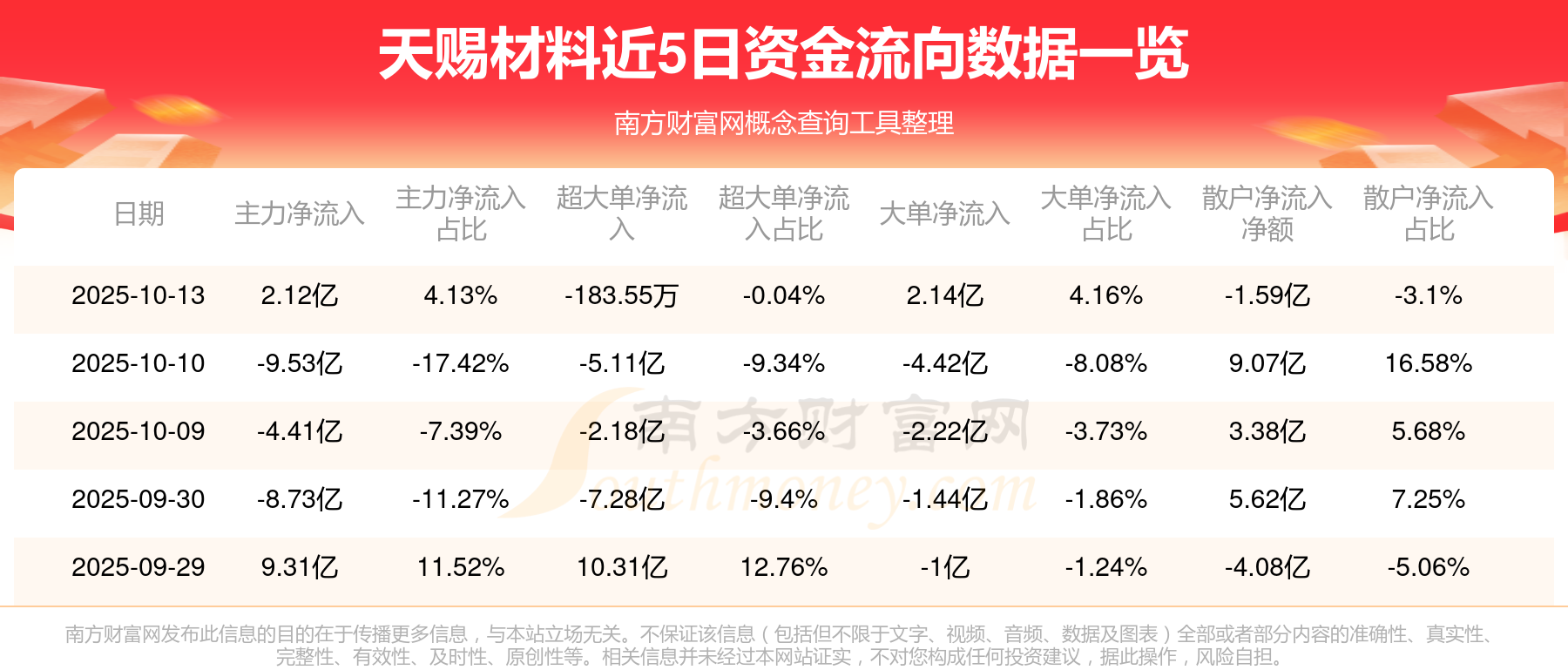 10月13日收盘最新消息,天赐材料5日内股价下跌0.8%,截至15点收盘,该股报37.290元涨5.61% 。