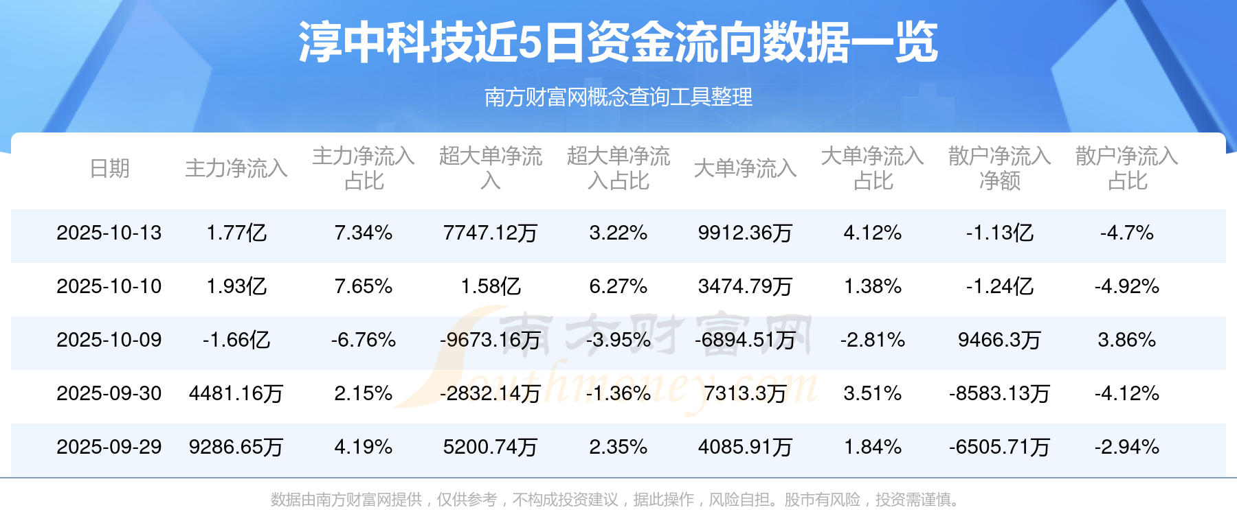 10月13日消息,淳中科技资金净流入1.77亿元,超大单资金净流入7747.12万元,换手率7.11%,成交金额24.07亿元。