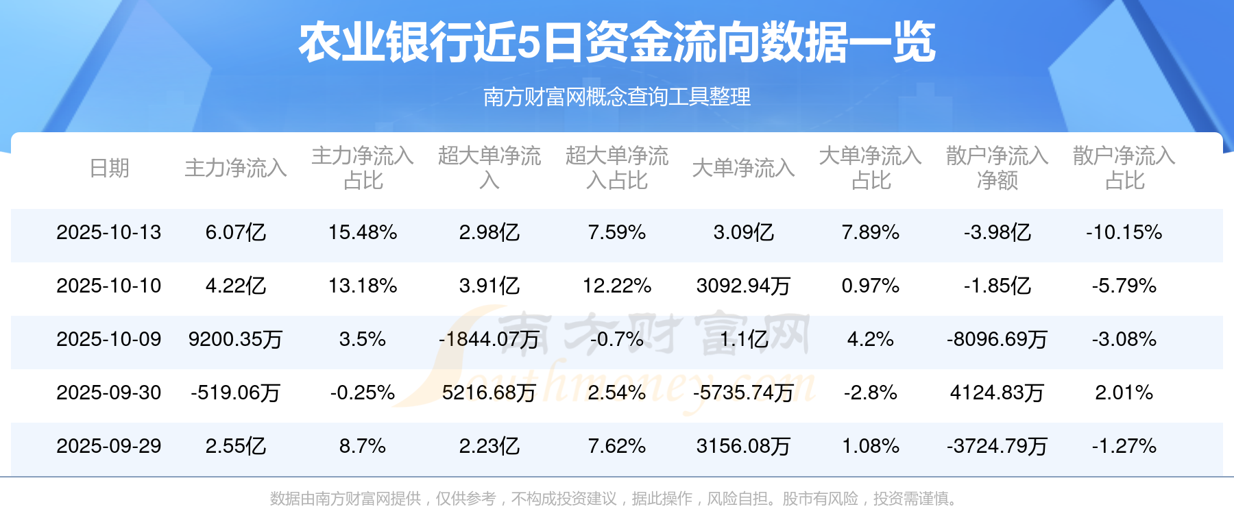 10月13日消息,农业银行7日内股价上涨4.34%,最新报6.910元,成交额39.23亿元。
