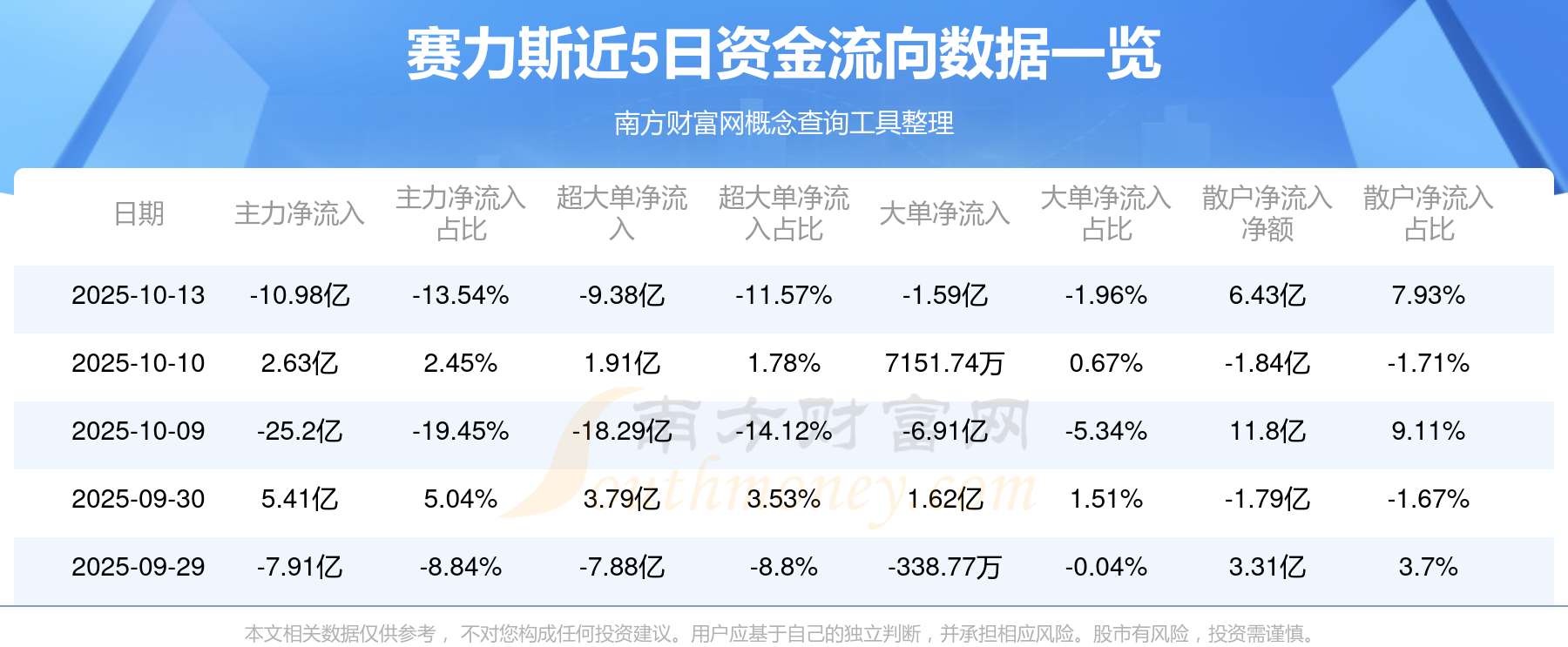 10月13日消息,赛力斯主力资金净流出10.98亿元,超大单资金净流出9.38亿元,散户资金净流入6.43亿元。