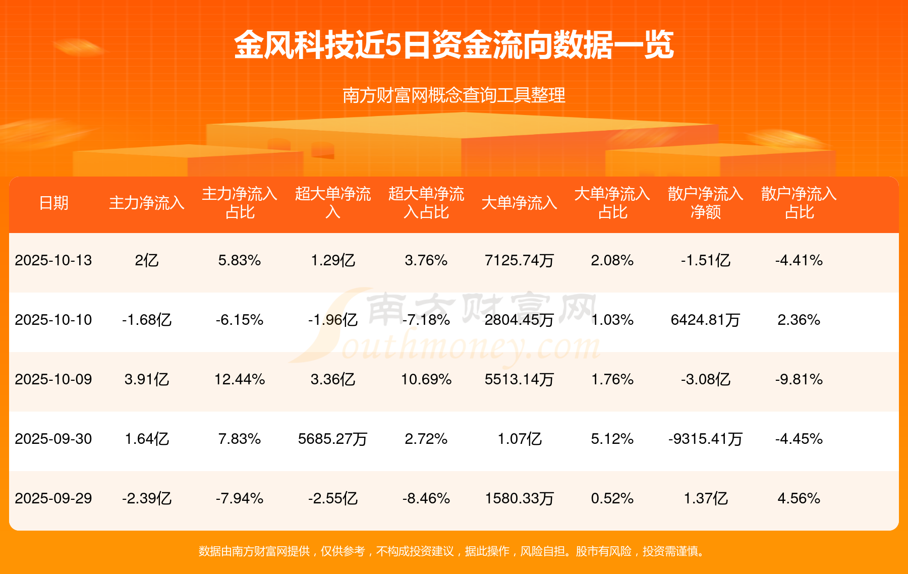 10月13日消息,金风科技资金净流入2亿元,超大单资金净流入1.29亿元,换手率6.26%,成交金额34.27亿元。