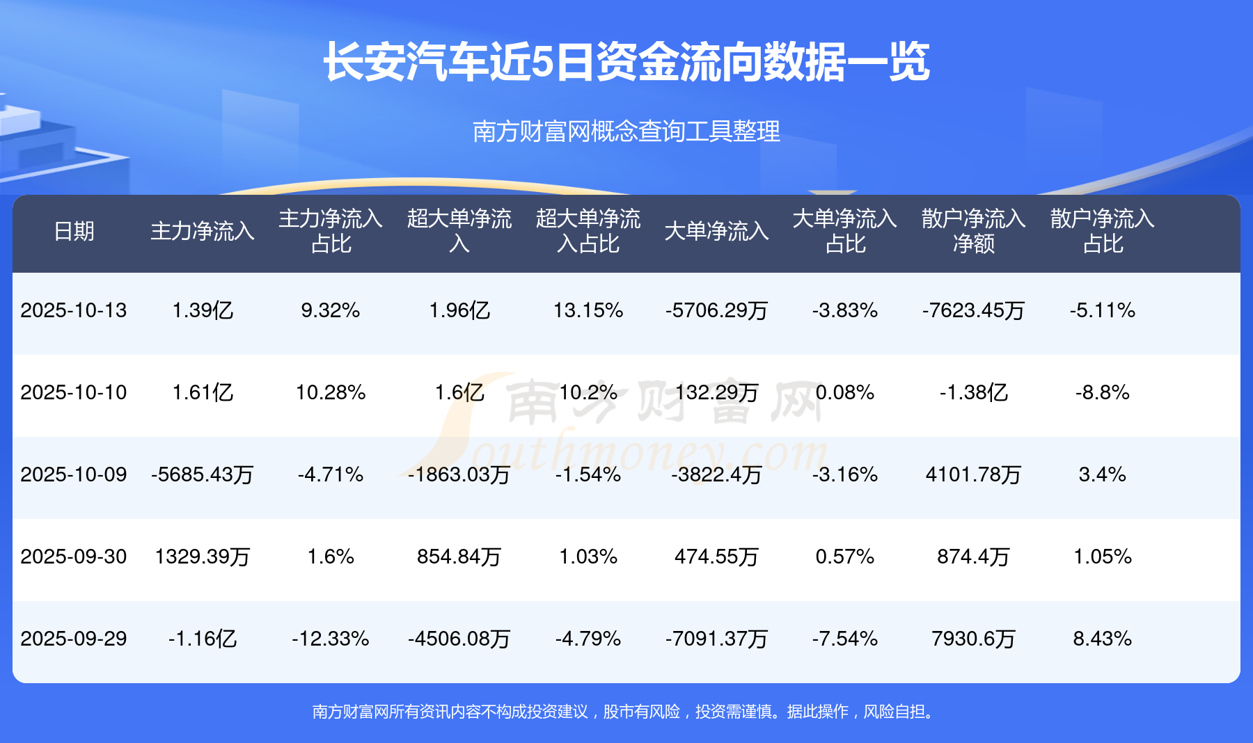 10月13日该股主力资金净流入1.39亿元,超大单资金净流入1.96亿元,大单资金净流出5706.29万元,中单资金净流出6276.59万元,散户资金净流出7623.45万元。