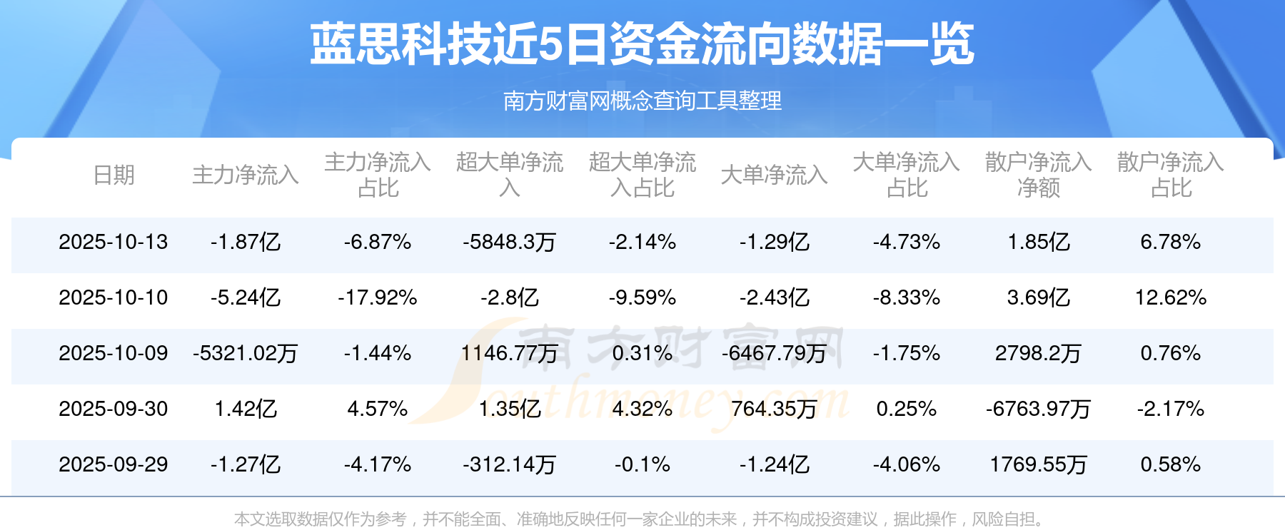 10月13日该股主力净入-1.87亿元,其中资金流入方面:超大单净入3.3亿元,大单净入7.24亿元,中单净入8.74亿元,散户净入7.14亿元;资金流出方面:超大单净出3.89亿元,大单净出8.53亿元,中单净出8.71亿元,散户净出5.29亿元。