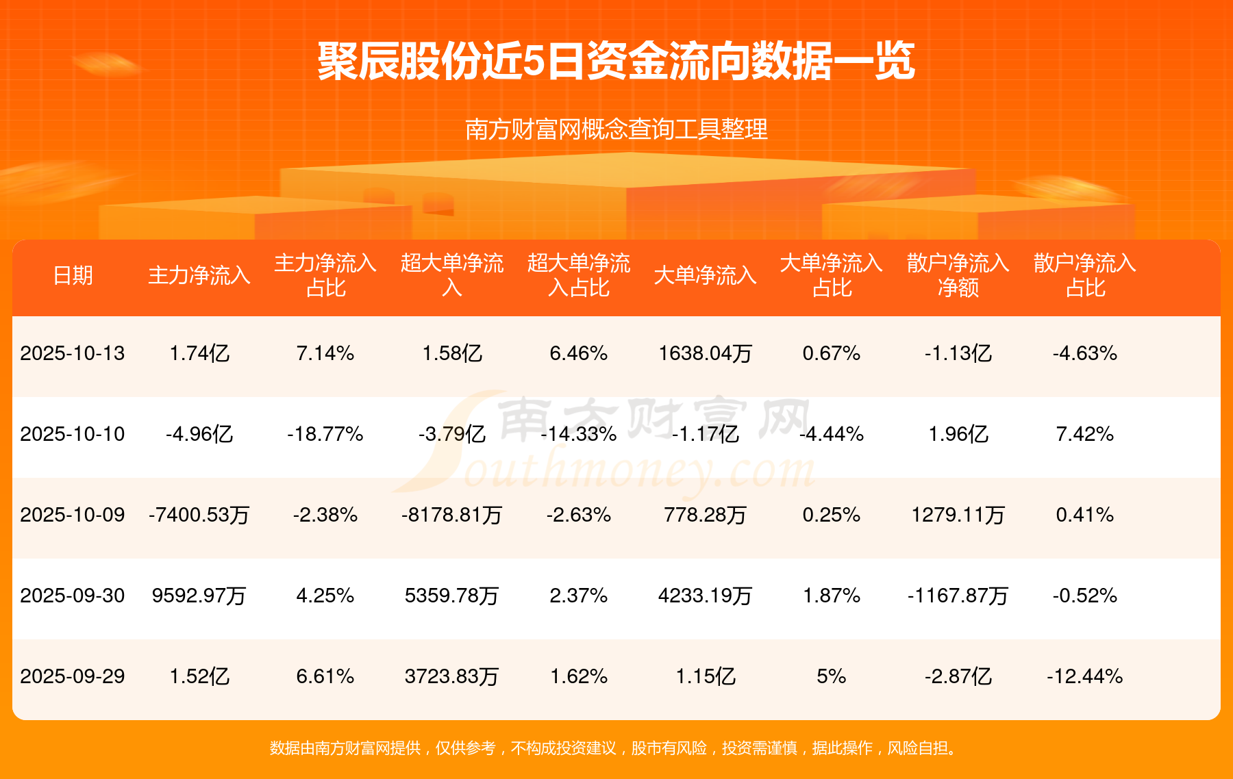 10月13日消息,聚辰股份主力净流入1.74亿元,超大单净流入1.58亿元,散户净流出1.13亿元。