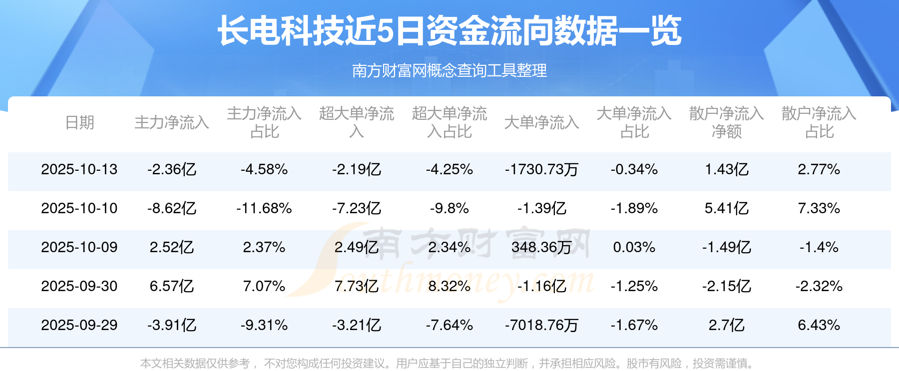 资金流向数据方面,10月13日主力资金净流流出2.36亿元,超大单资金净流出2.19亿元,大单资金净流出1730.73万元,散户资金净流入1.43亿元。