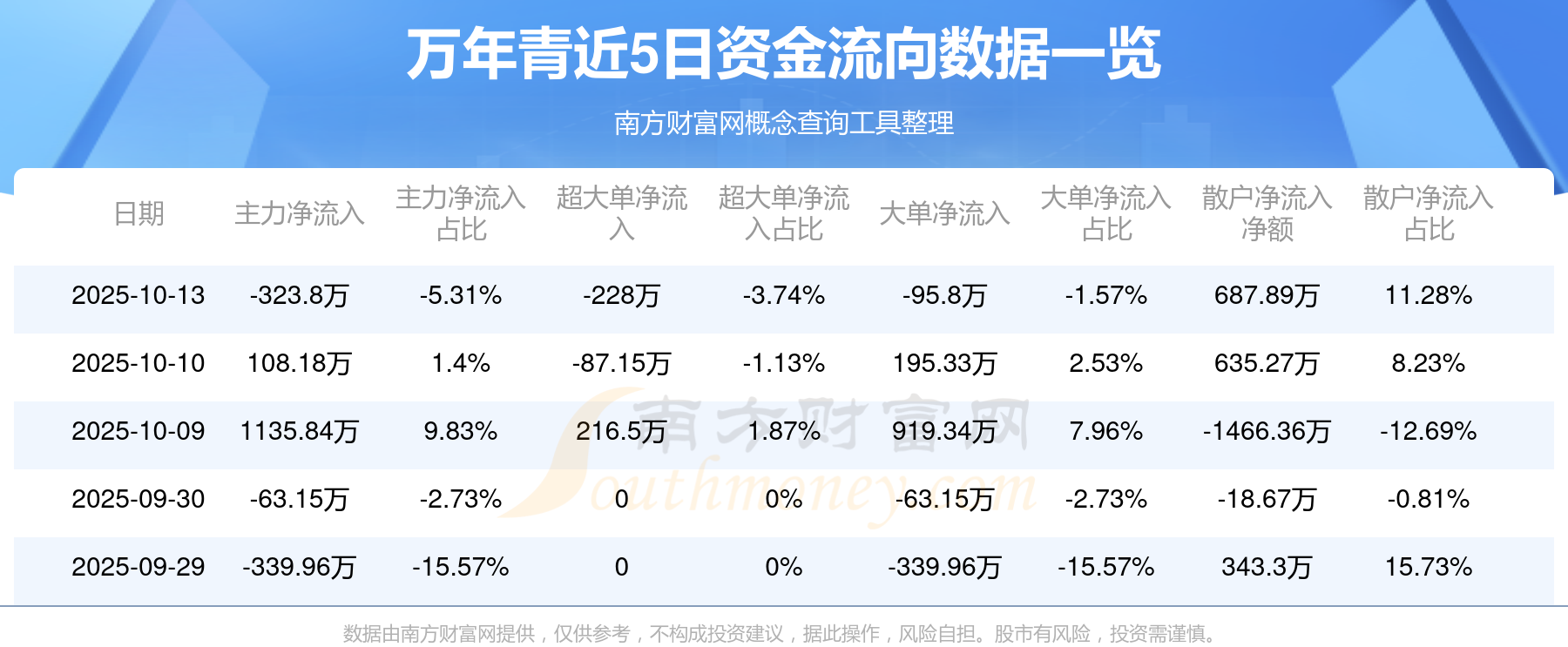 10月13日消息,万年青10月13日主力资金净流出323.8万元,超大单资金净流出228万元,大单资金净流出95.8万元,散户资金净流入687.89万元。