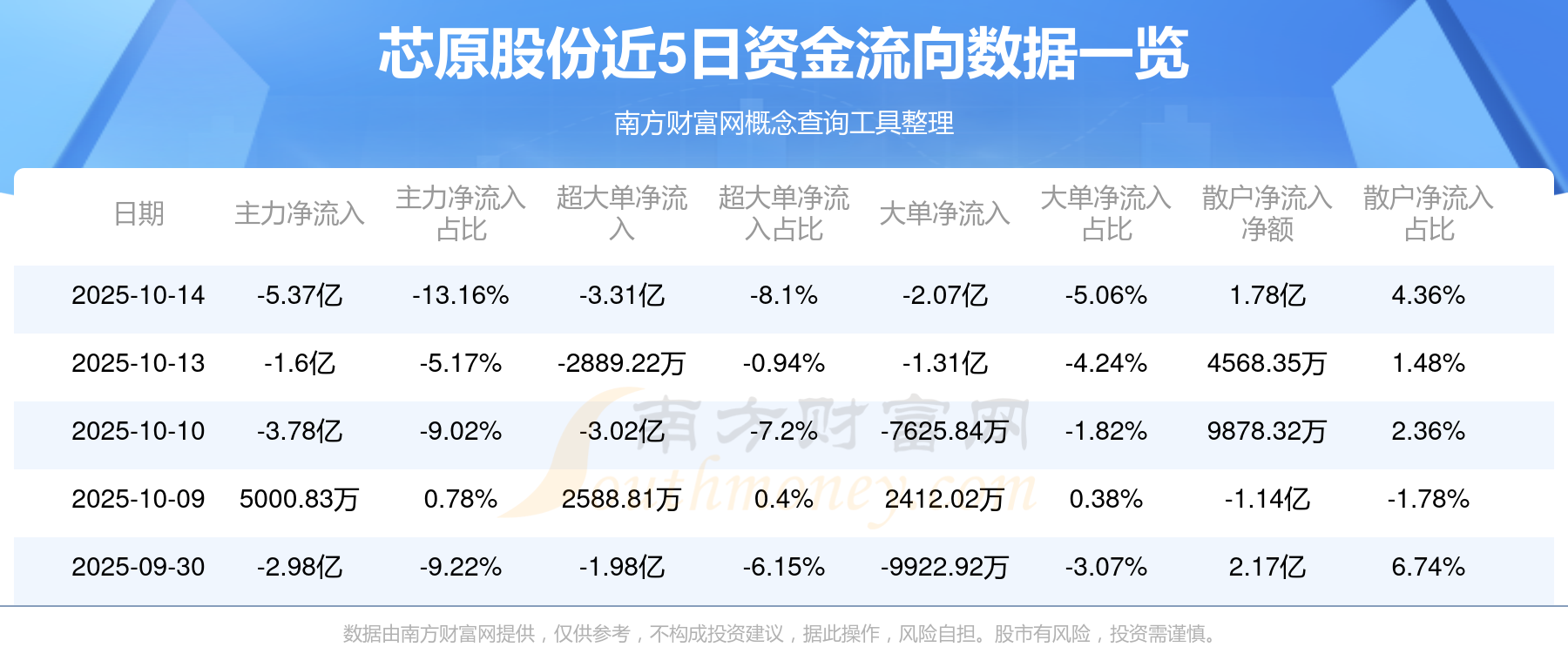 10月14日消息,芯原股份资金净流出5.37亿元,超大单净流出3.31亿元,换手率4.58%,成交金额40.83亿元。