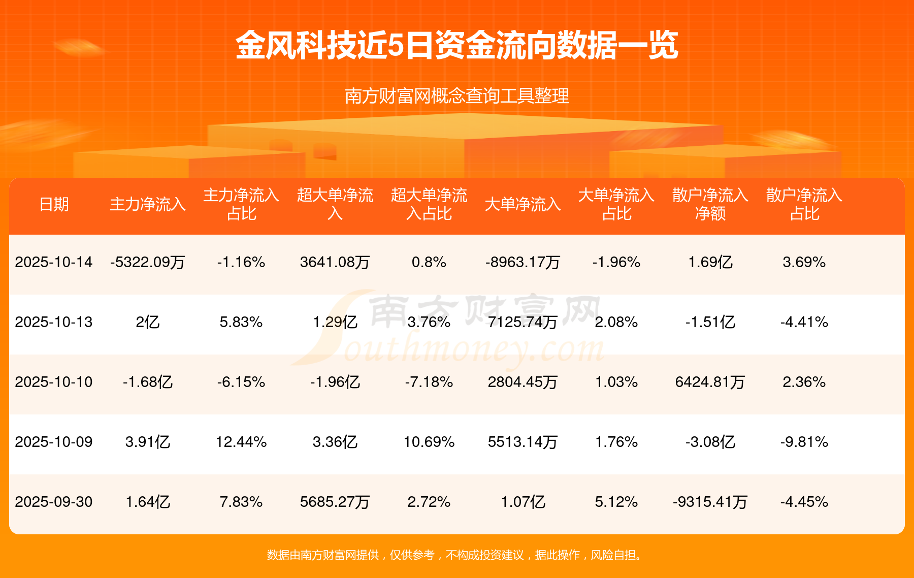 10月14日消息,金风科技资金净流出5322.09万元,超大单资金净流入3641.08万元,换手率7.86%,成交金额45.78亿元。