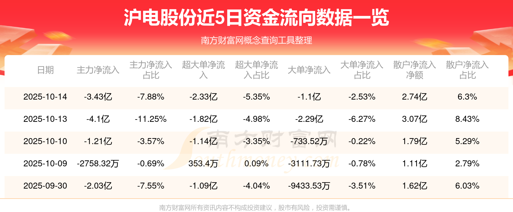 10月14日该股主力净流出3.43亿元,超大单净流出2.33亿元,大单净流出1.1亿元,中单净流入6865.24万元,散户净流入2.74亿元。