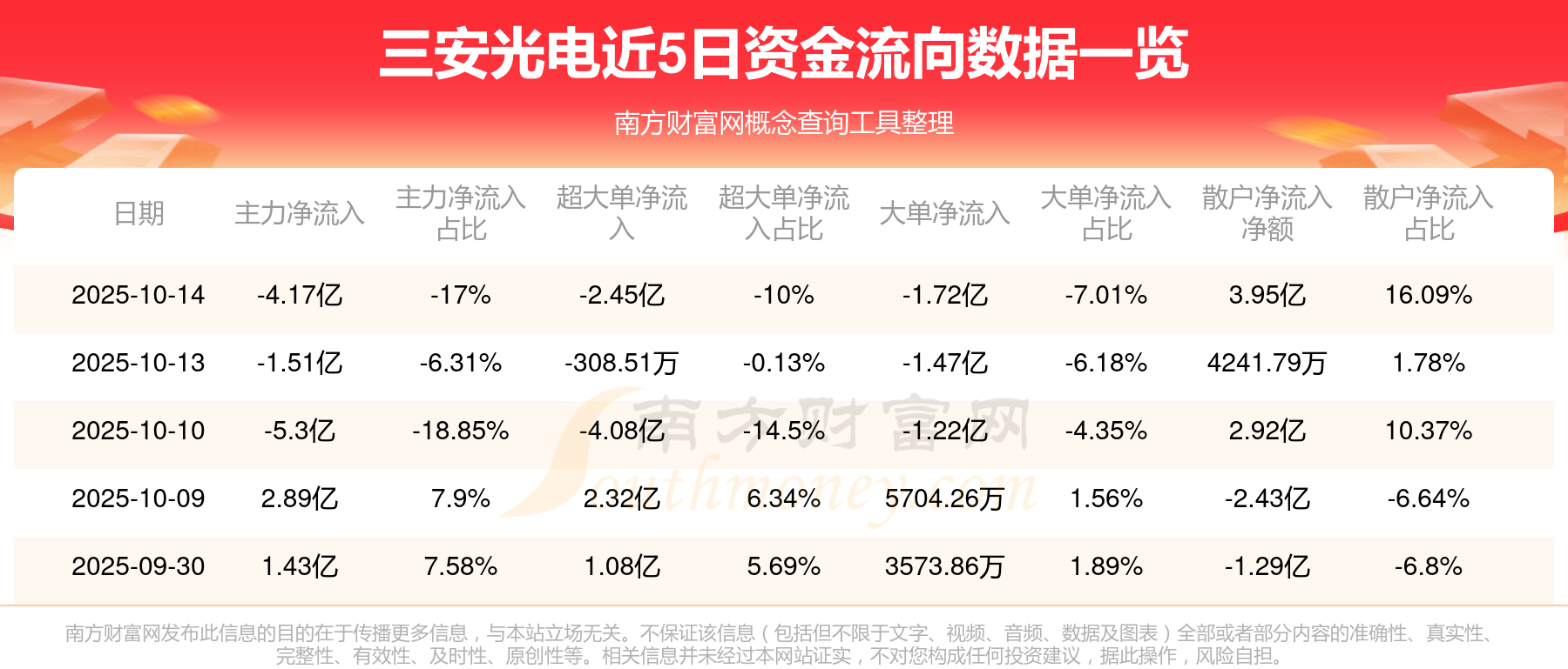 资金流向数据方面,10月14日主力资金净流流出4.17亿元,超大单资金净流出2.45亿元,大单资金净流出1.72亿元,散户资金净流入3.95亿元。