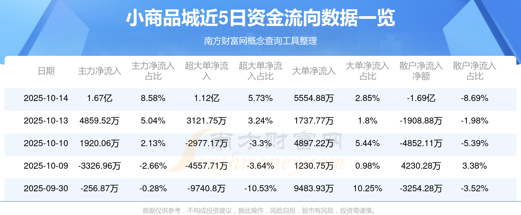10月14日消息,小商品城主力资金净流入1.67亿元,超大单资金净流入1.12亿元,散户资金净流出1.69亿元。