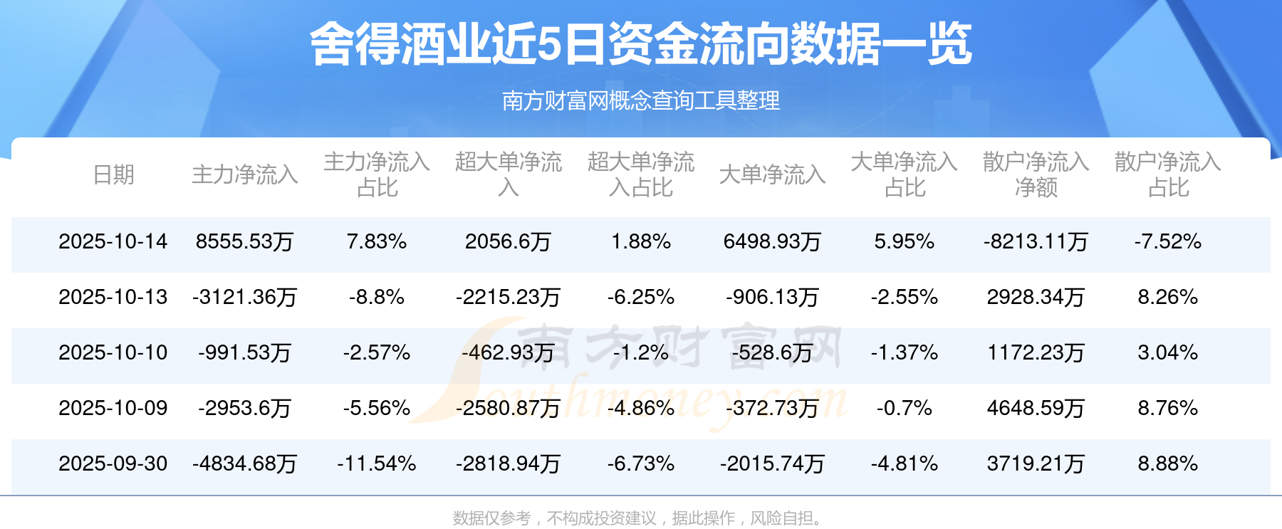 10月14日该股主力净入8555.53万元,其中资金流入方面:超大单净入1.06亿元,大单净入3.03亿元,中单净入3.89亿元,散户净入2.84亿元;资金流出方面:超大单净出8574.89万元,大单净出2.38亿元,中单净出3.92亿元,散户净出3.66亿元。