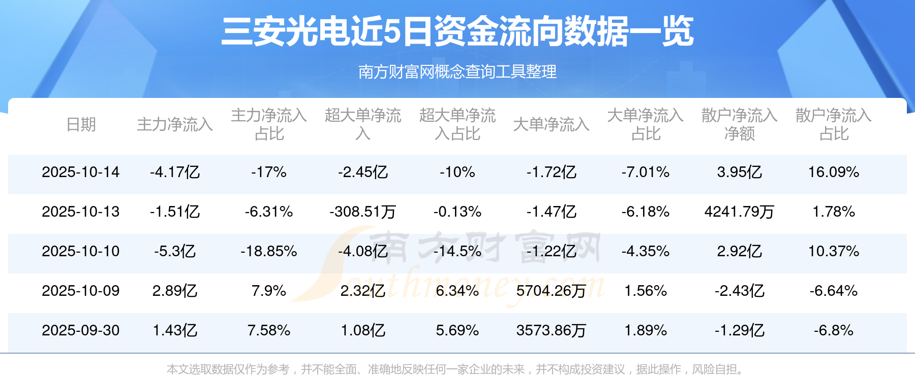 资金流向数据方面,10月14日主力资金净流流出4.17亿元,超大单资金净流出2.45亿元,大单资金净流出1.72亿元,散户资金净流入3.95亿元。