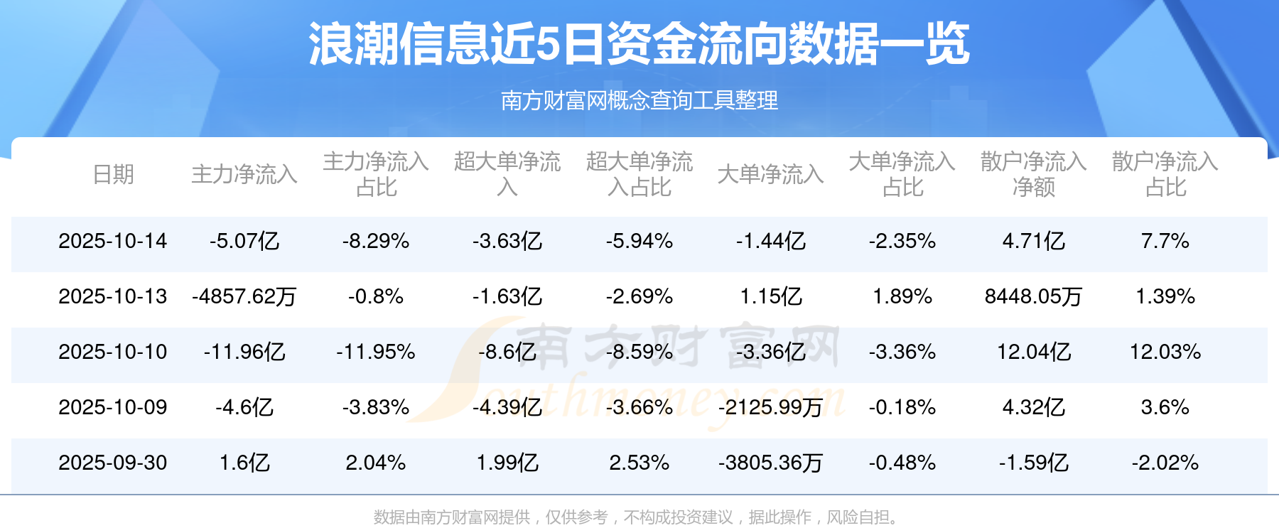 近5日资金流向一览见下表: