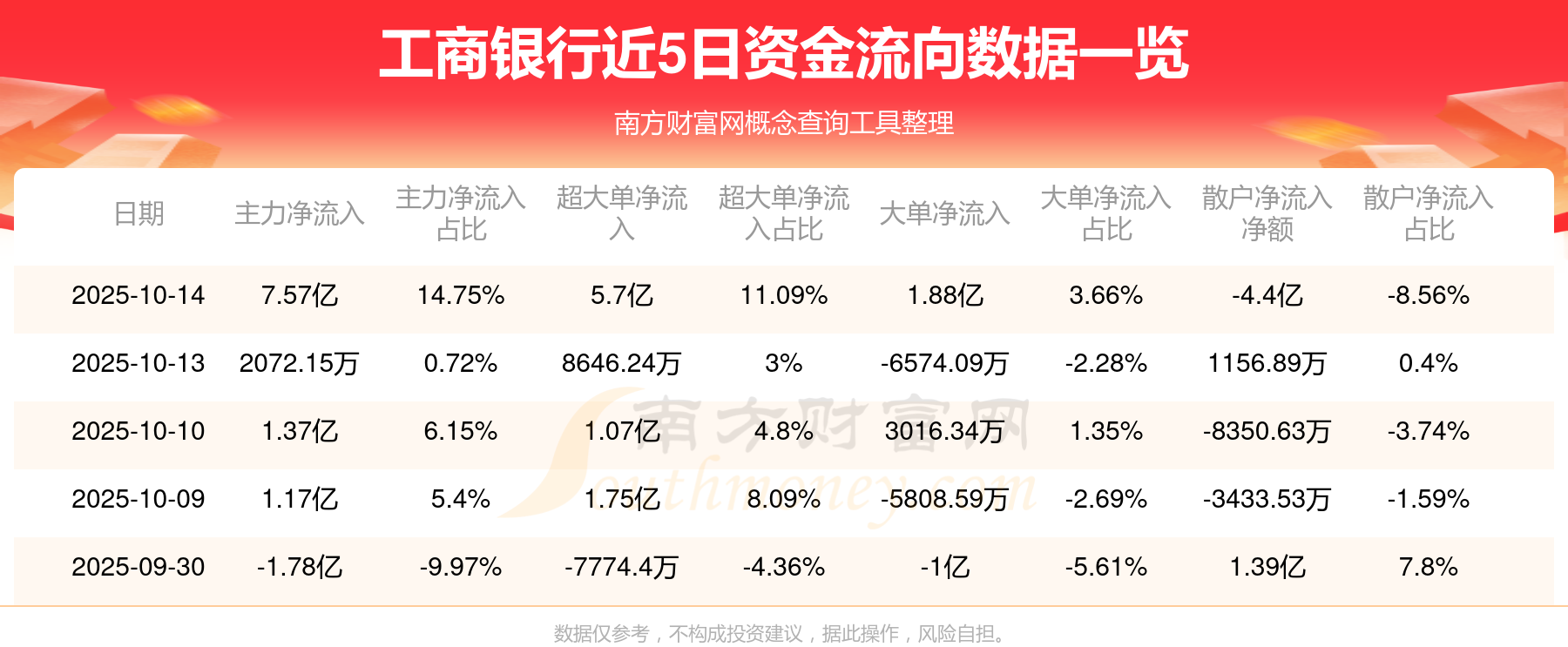10月14日该股主力净入7.57亿元,其中资金流入方面:超大单净入17.28亿元,大单净入15.95亿元,中单净入11.32亿元,散户净入6.14亿元;资金流出方面:超大单净出11.58亿元,大单净出14.07亿元,中单净出14.5亿元,散户净出10.54亿元。