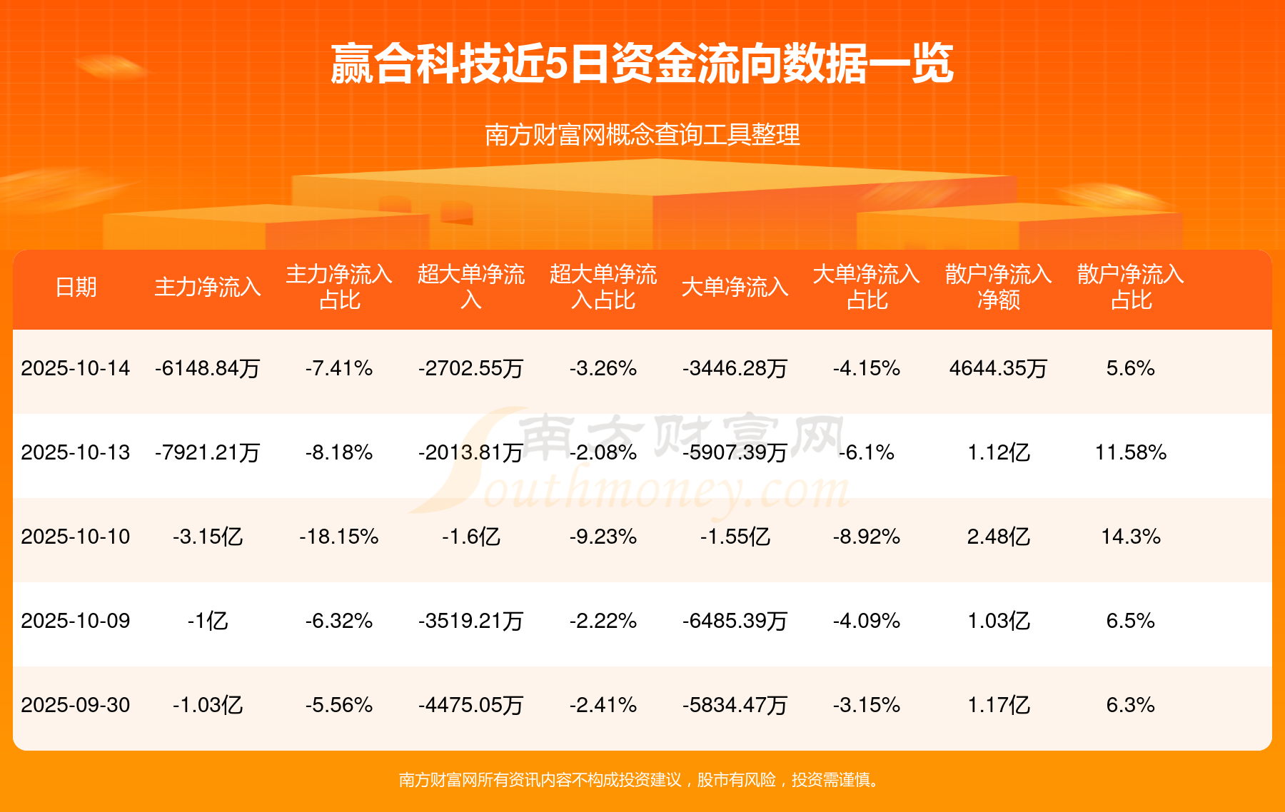 10月14日消息,赢合科技资金净流出6148.84万元,超大单资金净流出2702.55万元,换手率4.19%,成交金额8.3亿元。