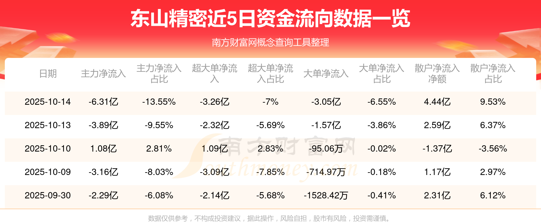 10月14日该股主力净流出6.31亿元,超大单净流出3.26亿元,大单净流出3.05亿元,中单净流入1.87亿元,散户净流入4.44亿元。