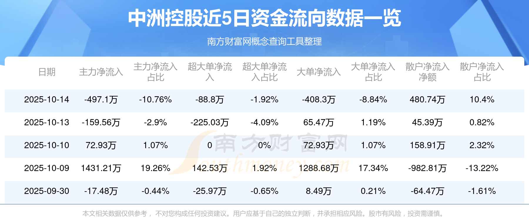 近5日资金流向一览见下表: