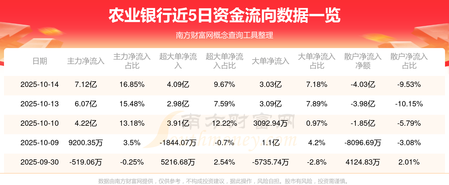 10月14日该股主力净入7.12亿元,其中资金流入方面:超大单净入11.9亿元,大单净入13.24亿元,中单净入9.9亿元,散户净入6.39亿元;资金流出方面:超大单净出7.81亿元,大单净出10.21亿元,中单净出12.99亿元,散户净出10.42亿元。