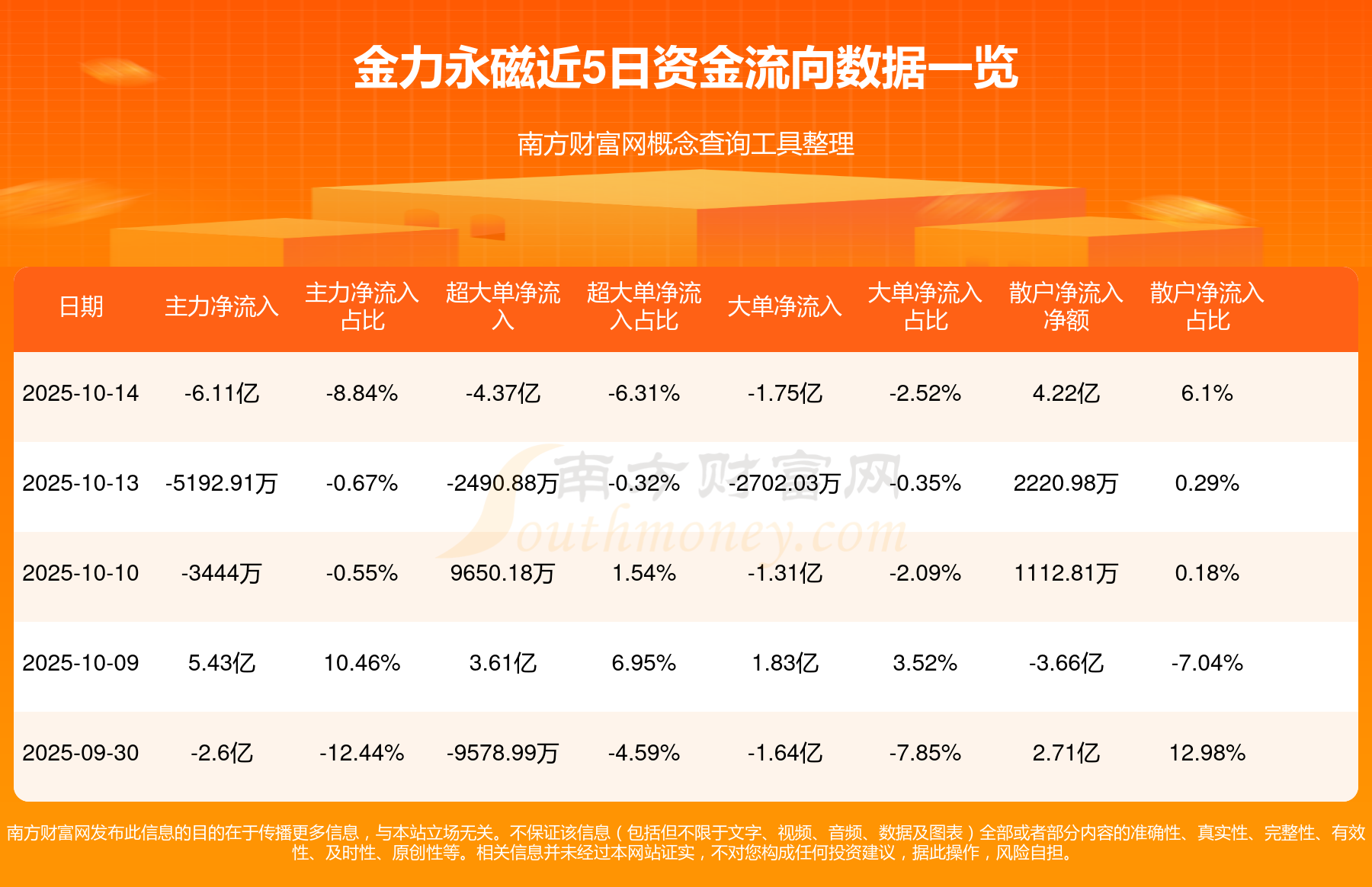 10月14日该股主力资金净流出6.11亿元,超大单资金净流出4.37亿元,大单资金净流出1.75亿元,中单资金净流入1.89亿元,散户资金净流入4.22亿元。