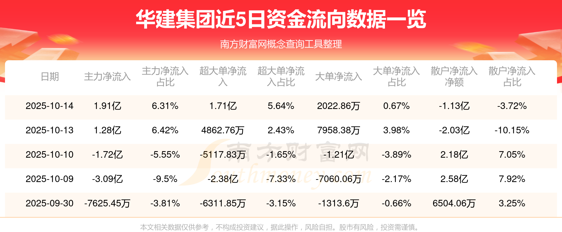 10月14日消息,华建集团资金净流入1.91亿元,超大单资金净流入1.71亿元,换手率8.87%,成交金额27.24亿元。