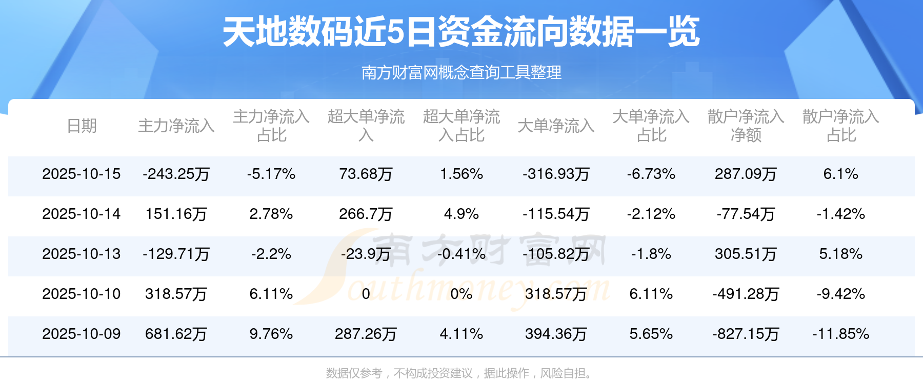 10月15日该股主力资金净流出243.25万元,超大单资金净流入73.68万元,大单资金净流出316.93万元,中单资金净流出43.84万元,散户资金净流入287.09万元。