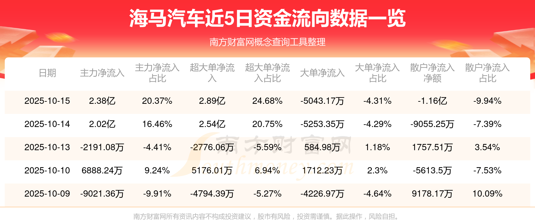 近5日资金流向一览见下表: