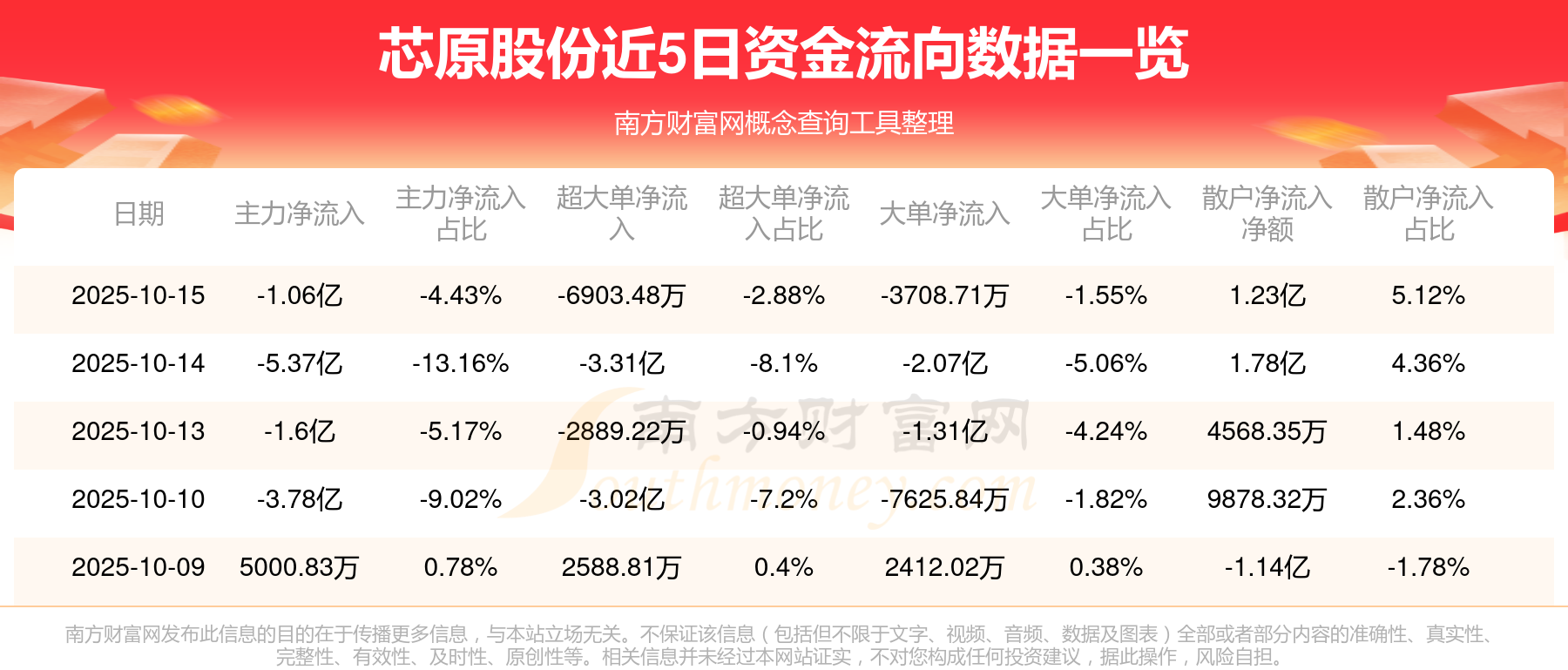 近5日资金流向一览见下表: