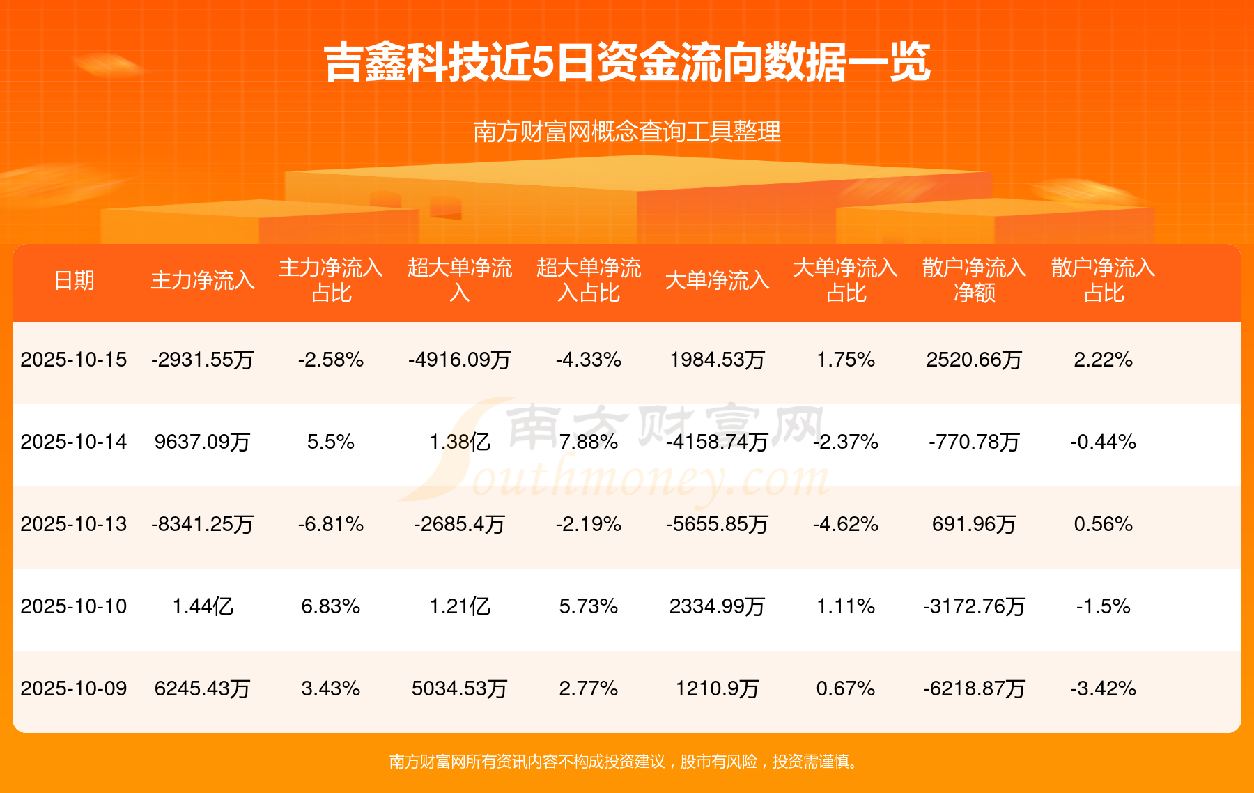 近5日资金流向一览见下表: