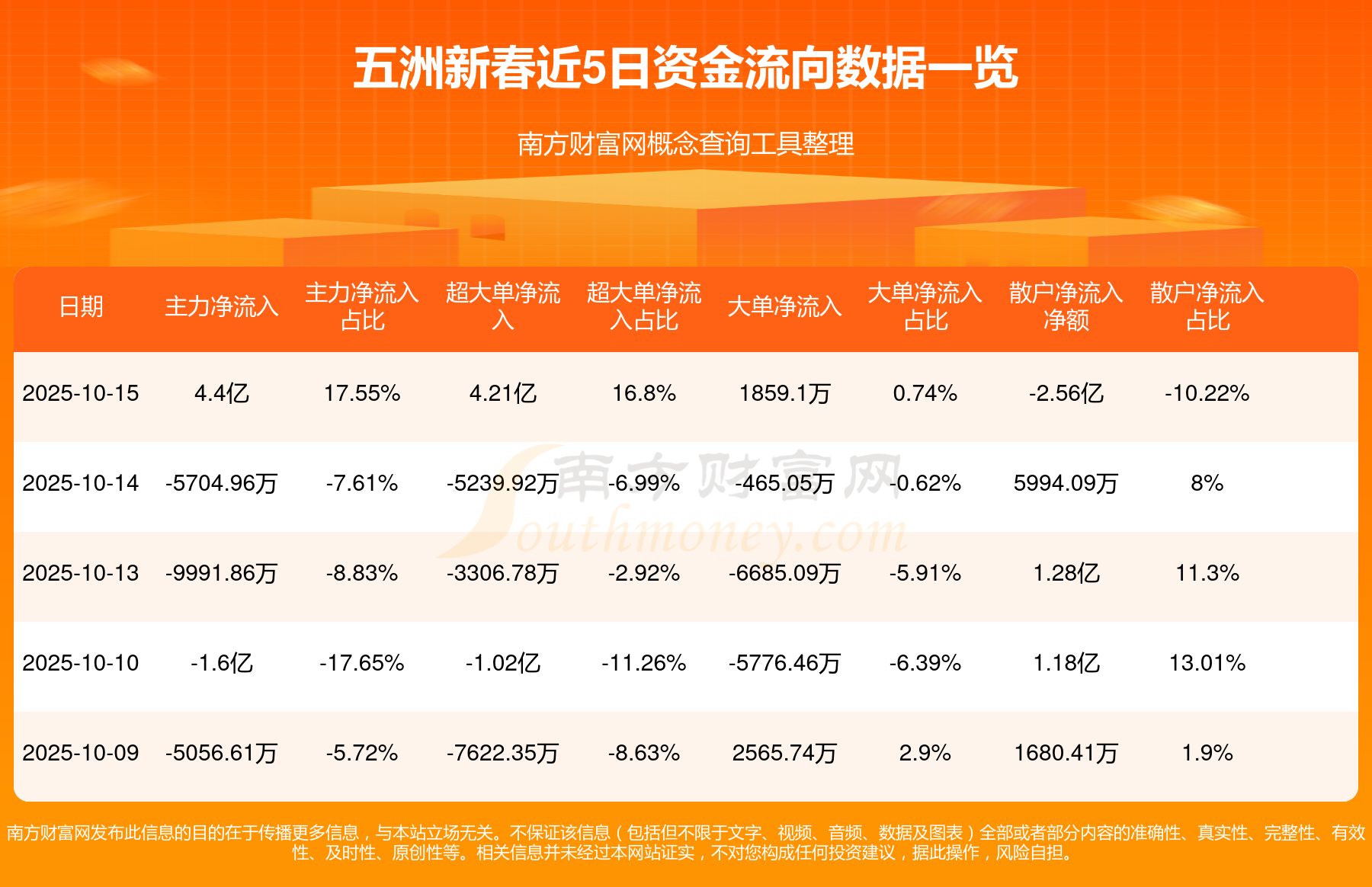 10月15日消息,五洲新春10月15日主力资金净流入4.4亿元,超大单资金净流入4.21亿元,大单资金净流入1859.1万元,散户资金净流出2.56亿元。