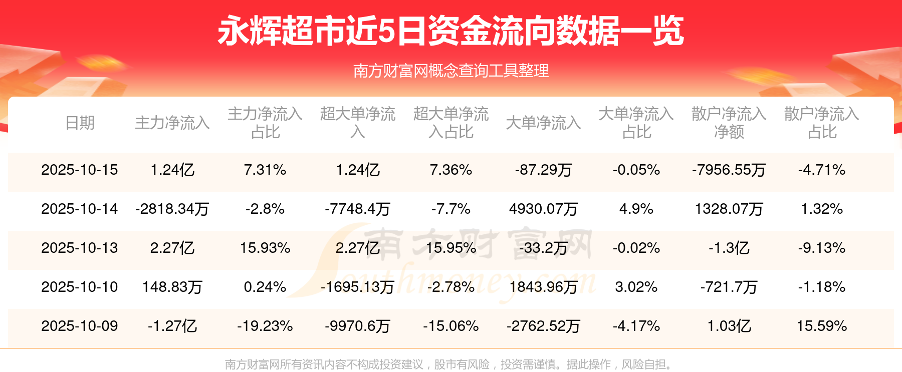 近5日资金流向一览见下表: