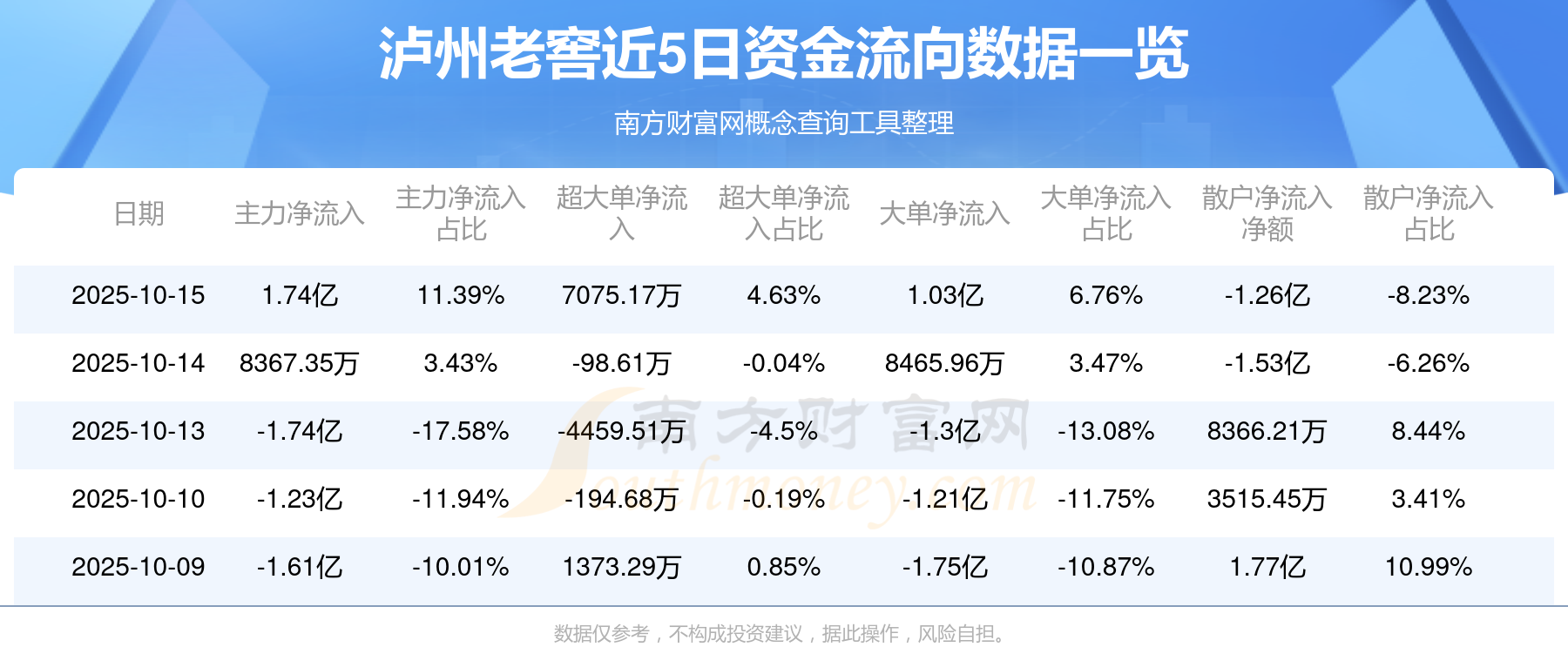 10月15日消息,泸州老窖主力净流入1.74亿元,超大单净流入7075.17万元,散户净流出1.26亿元。
