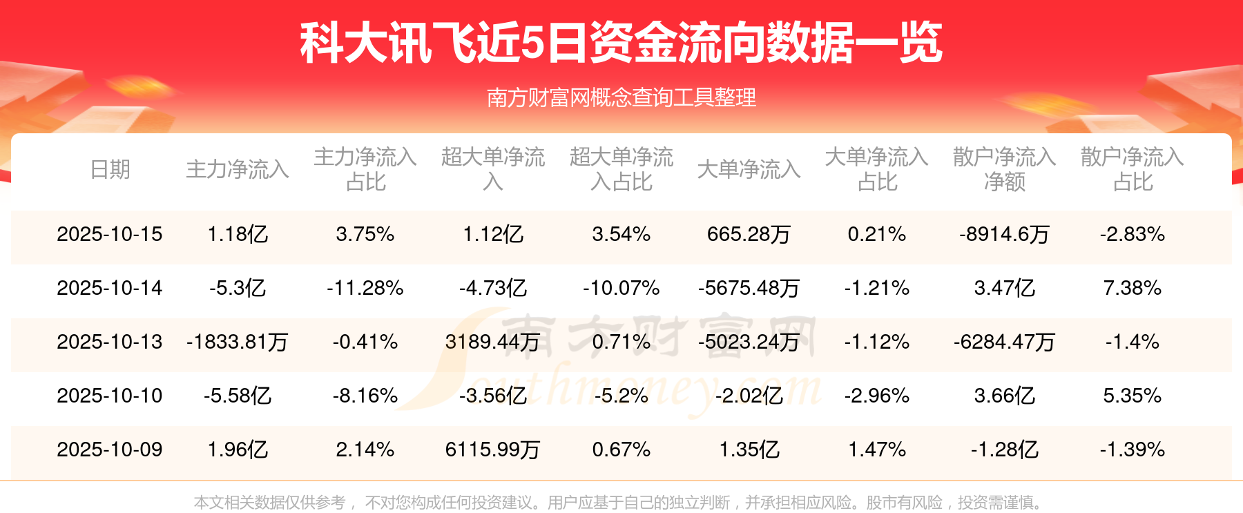 10月15日消息,科大讯飞资金净流出1.18亿元,超大单资金净流入1.12亿元,最新报54.480元,换手率2.69%,成交总金额31.55亿元。