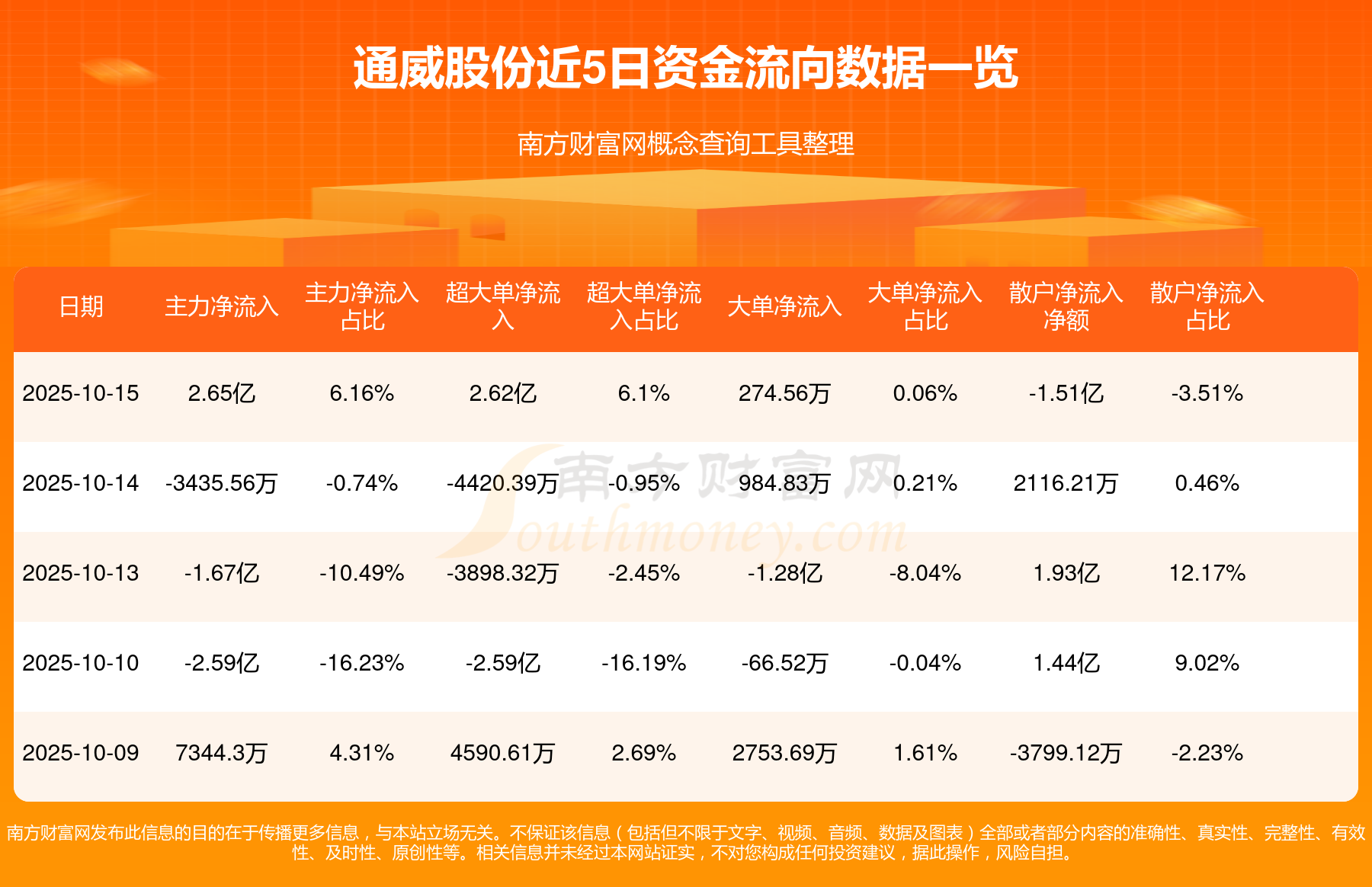 10月15日该股主力净入2.65亿元,其中资金流入方面:超大单净入10.36亿元,大单净入12.16亿元,中单净入11.59亿元,散户净入8.39亿元;资金流出方面:超大单净出7.74亿元,大单净出12.13亿元,中单净出12.73亿元,散户净出9.9亿元。