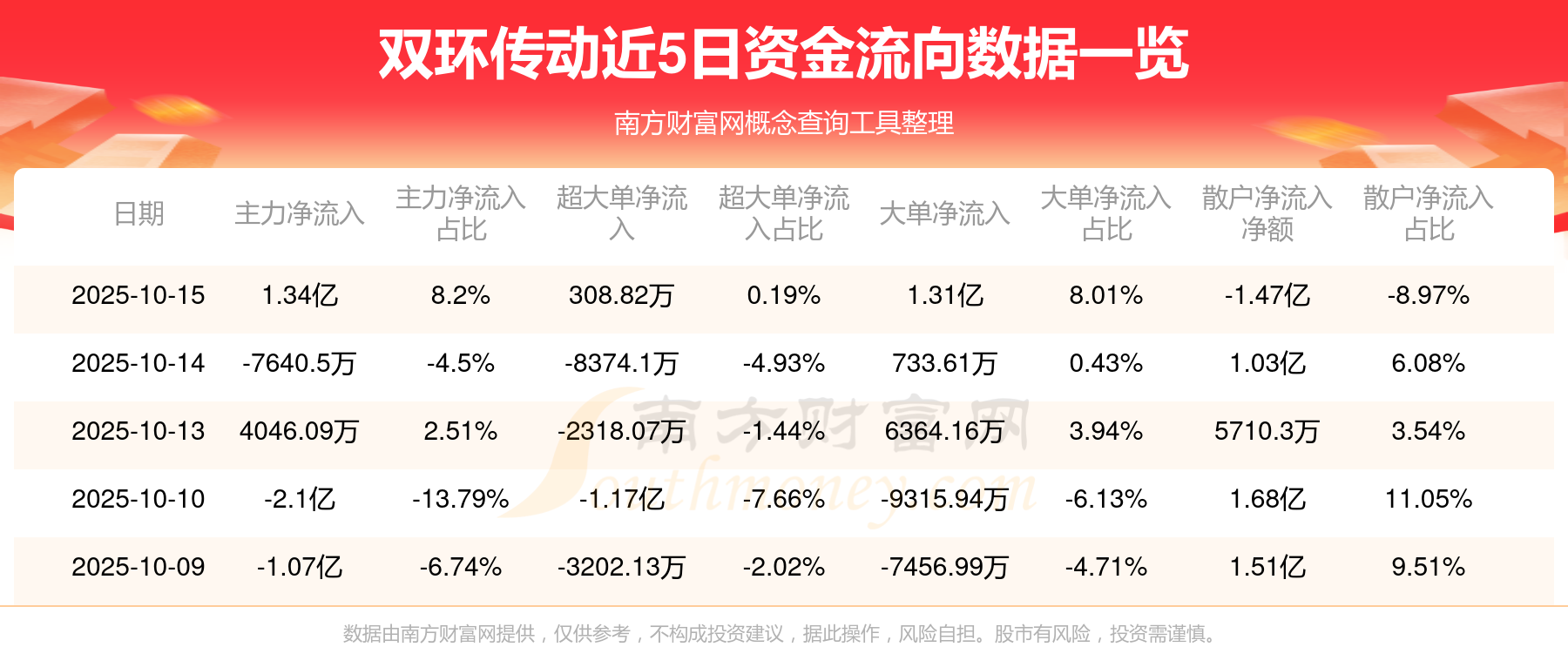 10月15日消息,双环传动(002472)开盘涨4.14%,报43.810元/股,成交量3827.88万手,换手率5.07%,振幅涨4.86%。