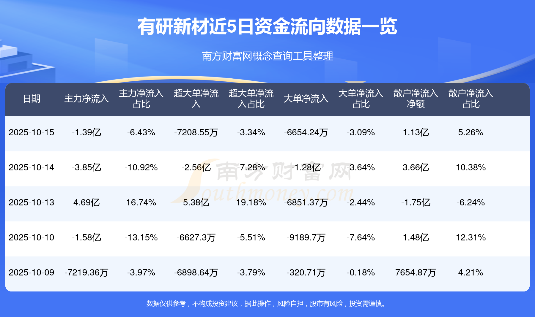 10月15日消息,有研新材主力净流出1.39亿元,超大单净流出7208.55万元,散户净流入1.13亿元。